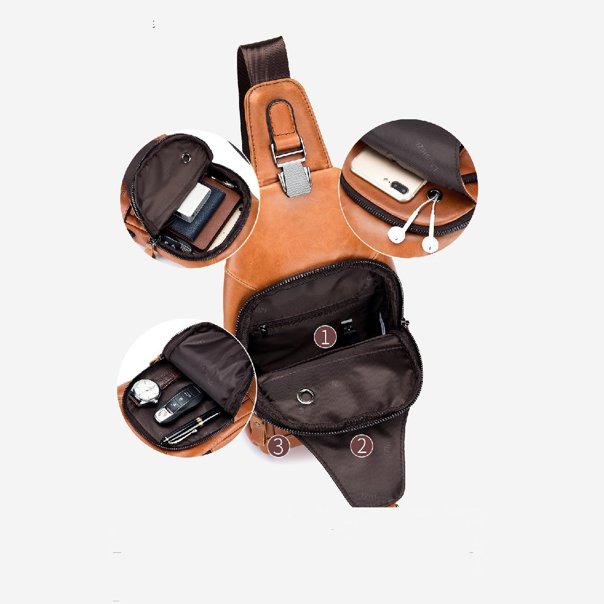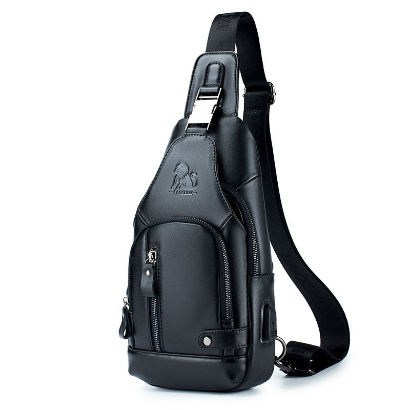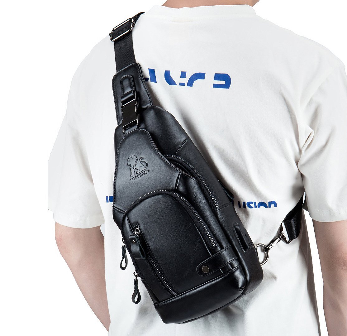 牛革チェストバッグ本革チェストバッグカジュアルメンズクロスボディバッグ外部 USB ポート第一層牛革ショルダーバッグ ブラックhw1200