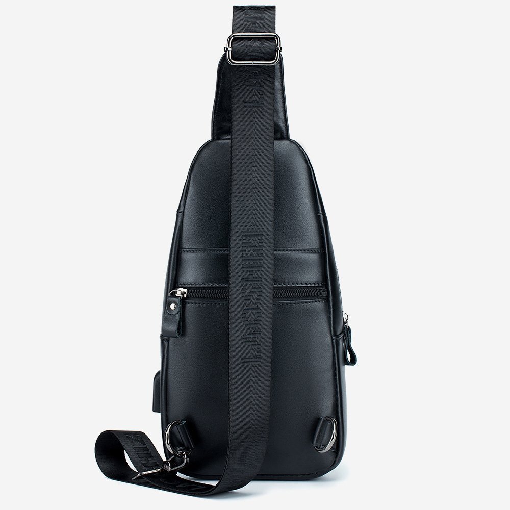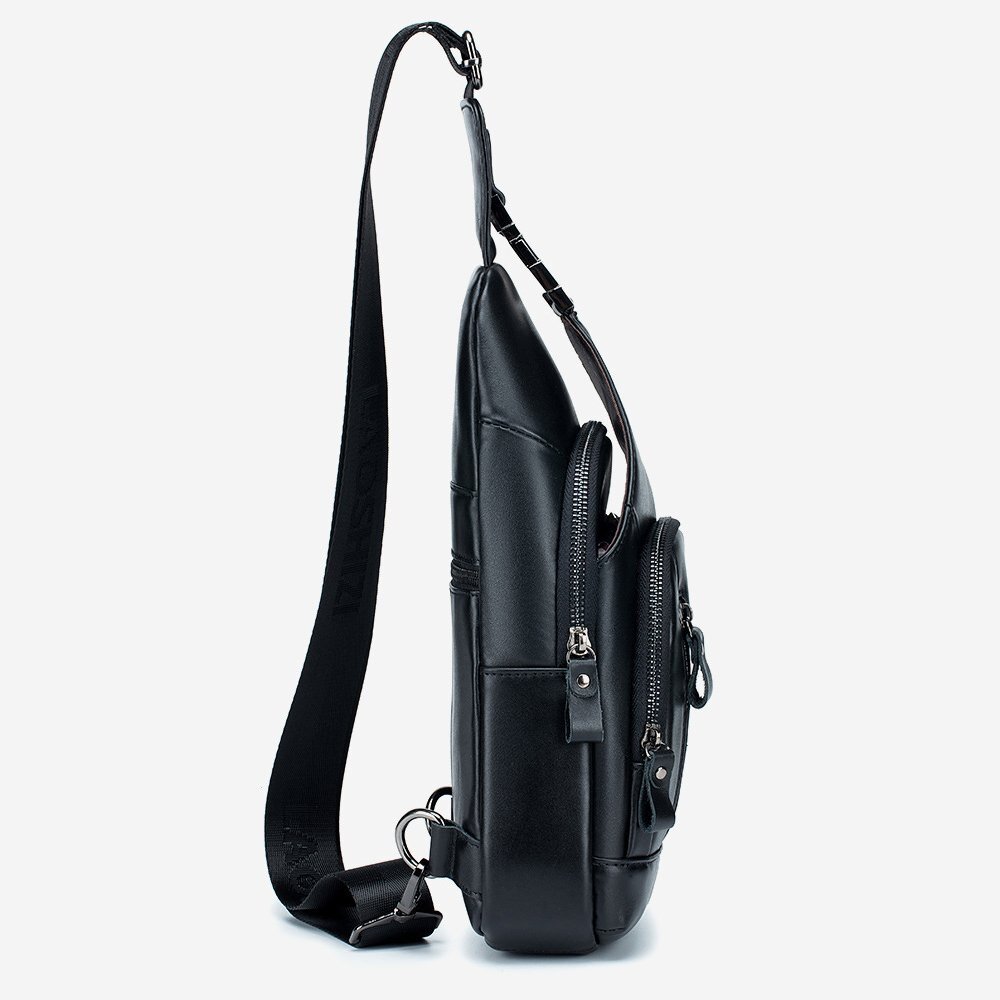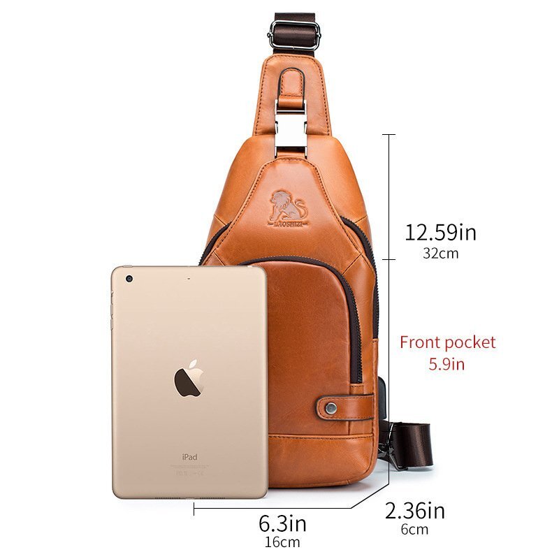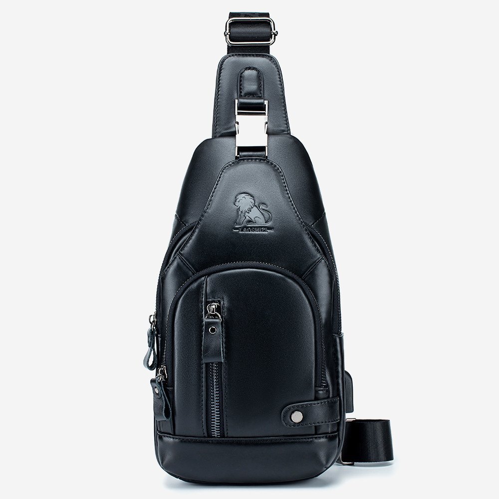 牛革チェストバッグ本革チェストバッグカジュアルメンズクロスボディバッグ外部 USB ポート第一層牛革ショルダーバッグ ブラックhw1200