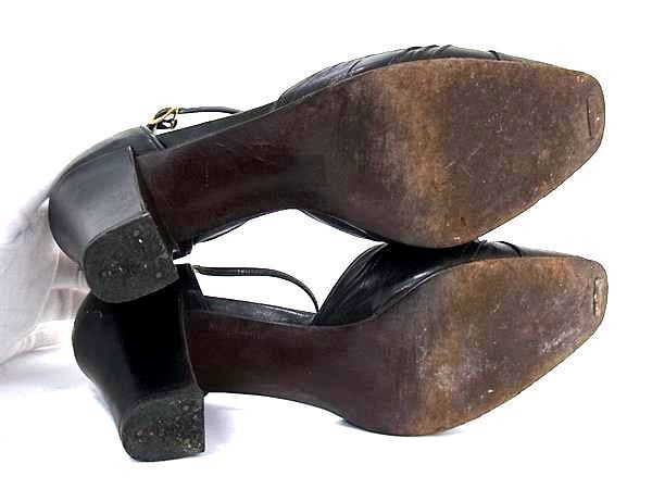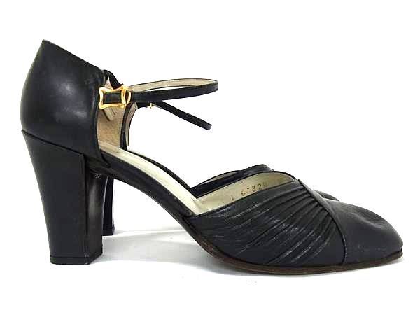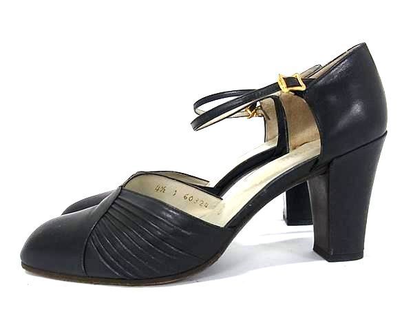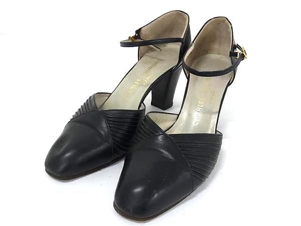 CHARLES JOURDAN シャルル ジョルダン レザー ヒール パンプス サイズ 4 1/2 (約21.5cm) 靴 シューズ レディース ブラック系 DF5342