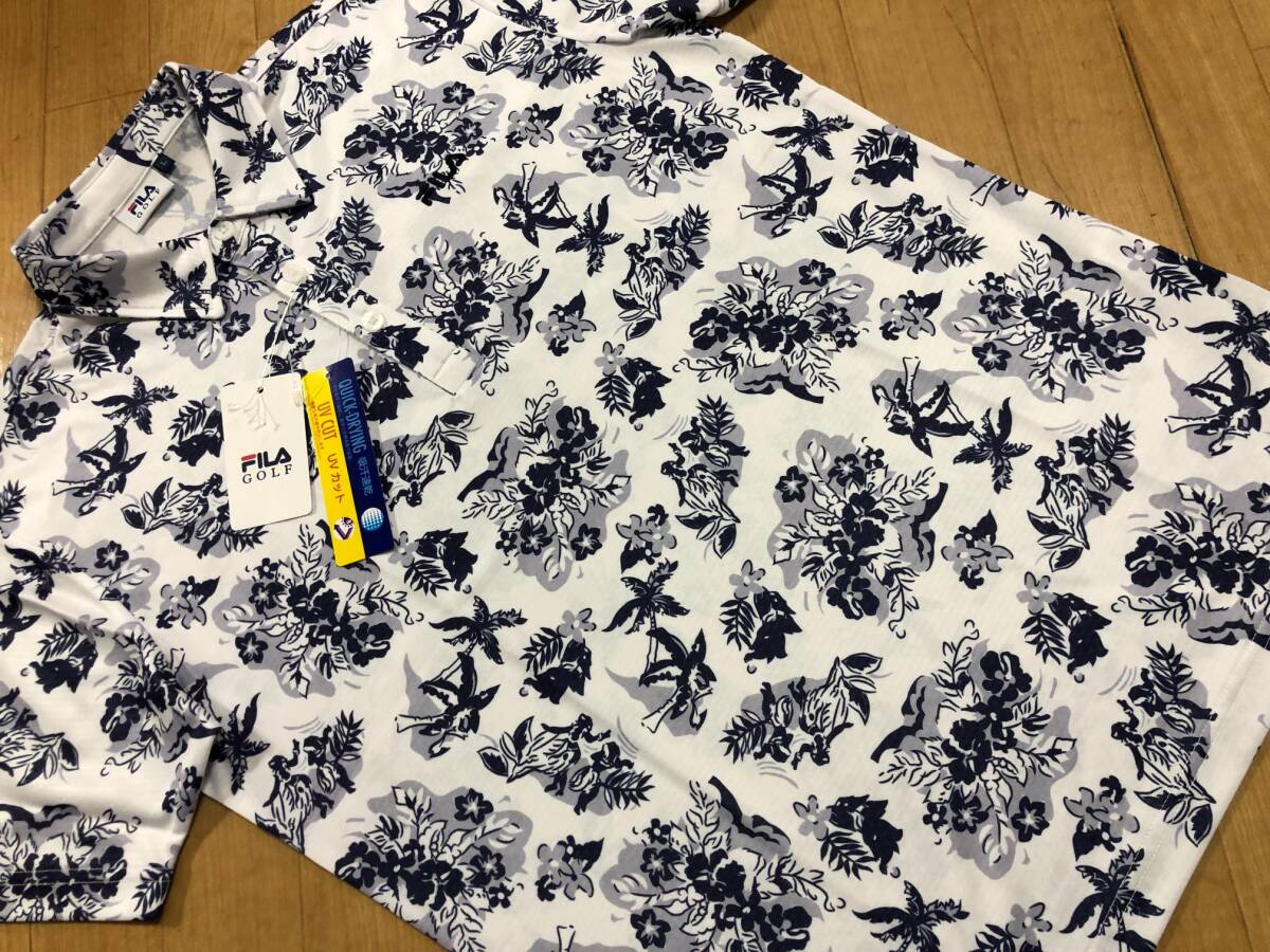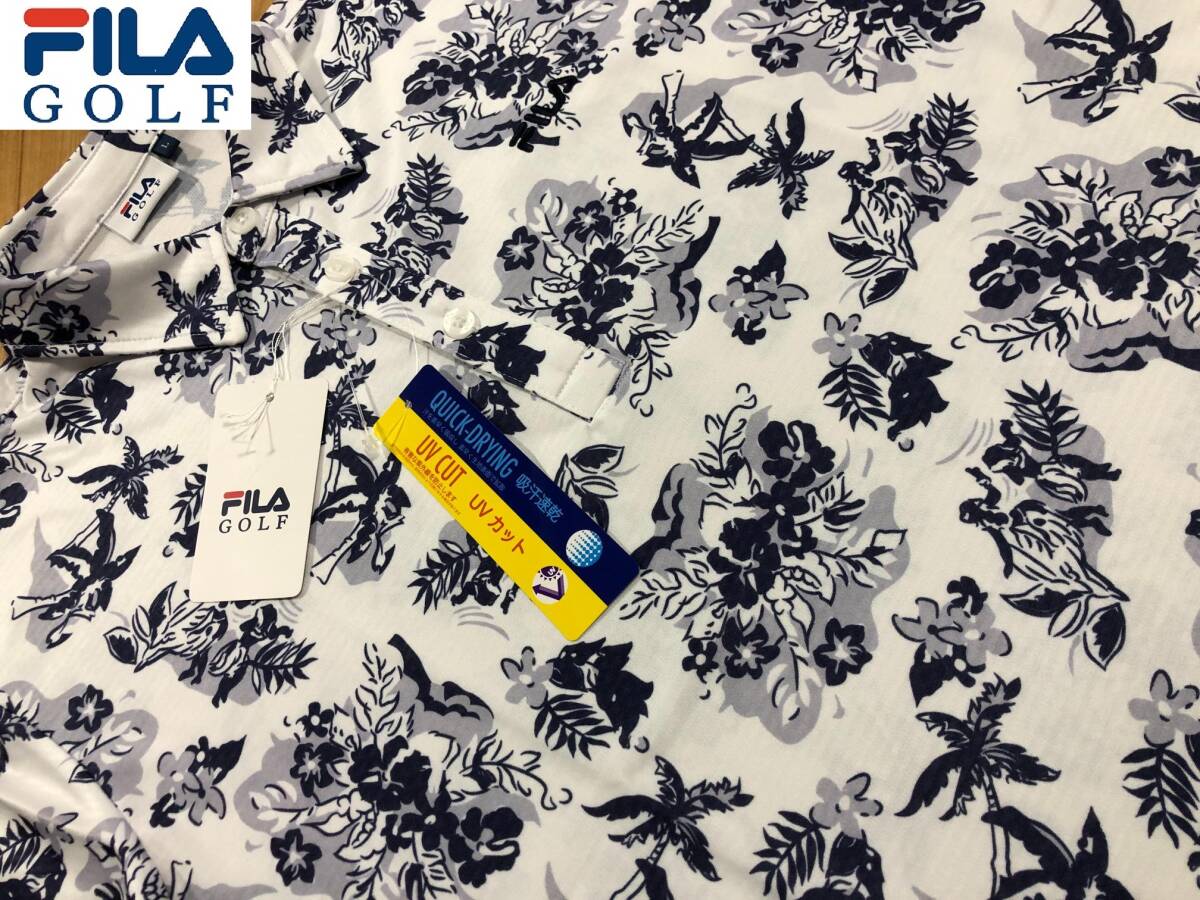 ・スピード発送 新品未使用 FILA GOLF(フィラゴルフ) 春夏 吸汗速乾 UVカット ハワイボタニカル柄 半袖ポロシャツ 744-671(WT)LL