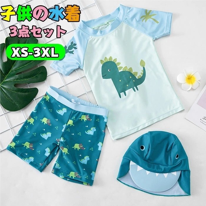 水着 子供 男の子 上下セット 水泳 スイムウェア 半袖ラッシュガード ショートパンツ 子供用 ジュニア 半袖 ラッシュガード スイムキャップ