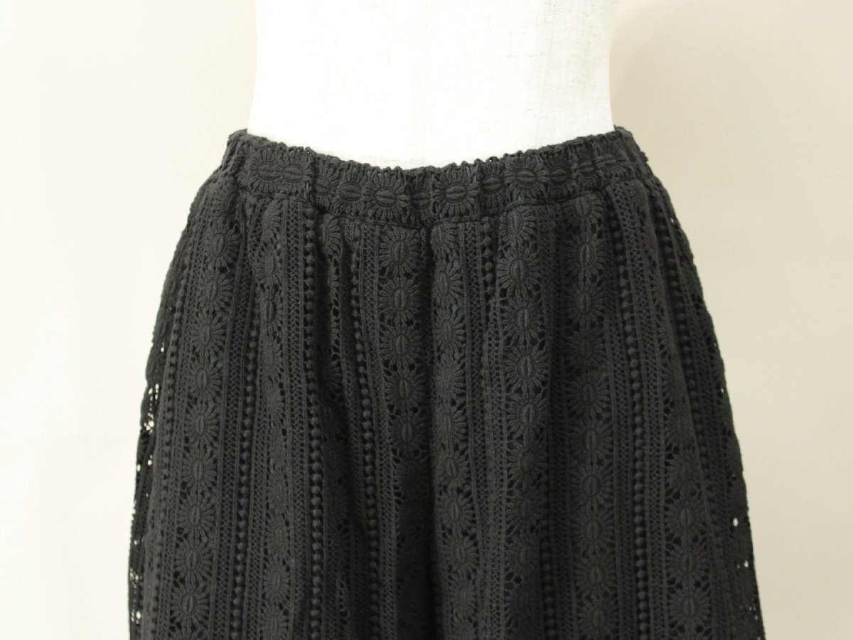 美品 ホコモモラ コットンレースハーフキュロットパンツ/定価8900円 黒40 an068