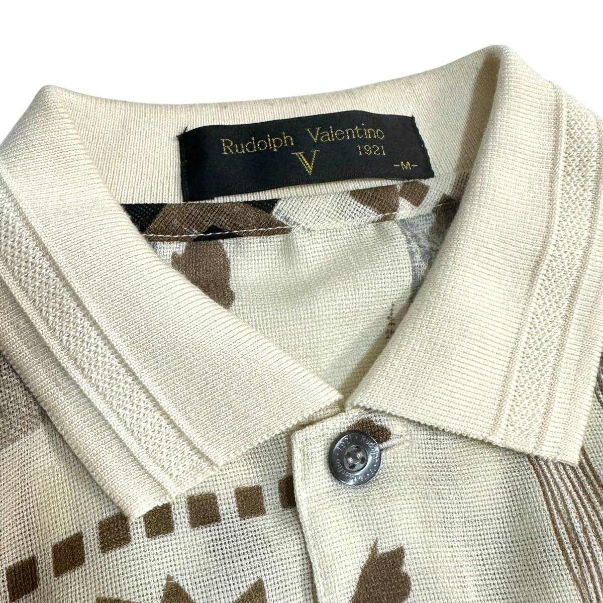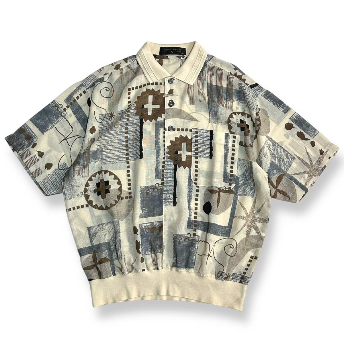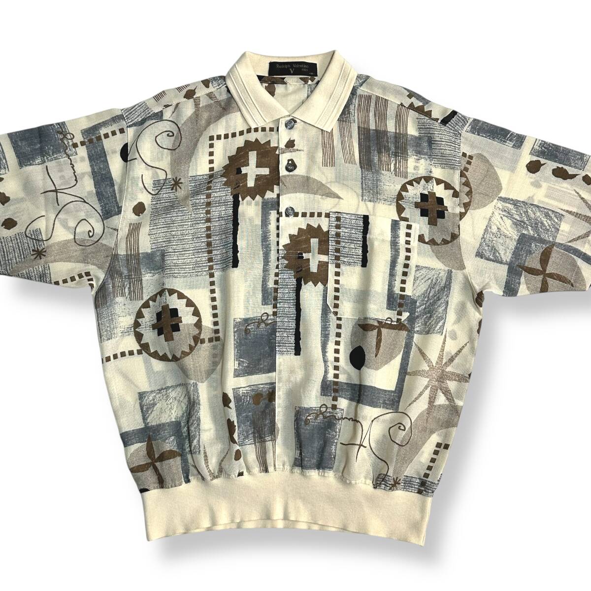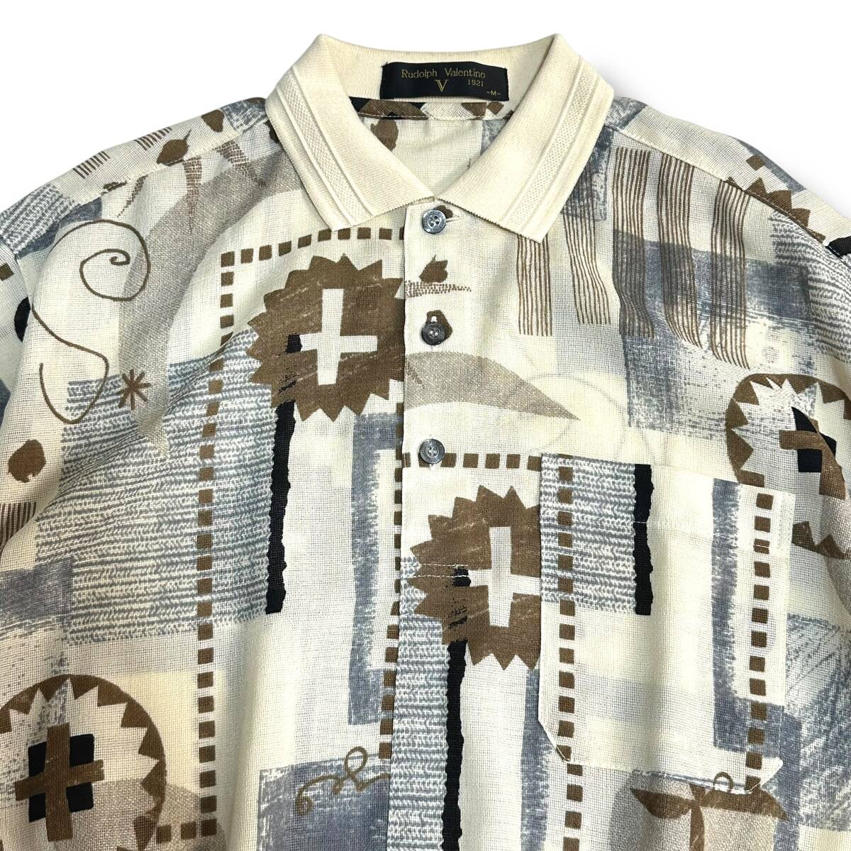 貴重【Rudolph Valentino】80s 90s VINTAGE アートデザイン 総柄 ビンテージポロシャツ レトロ古着 古着ミックス 日本製