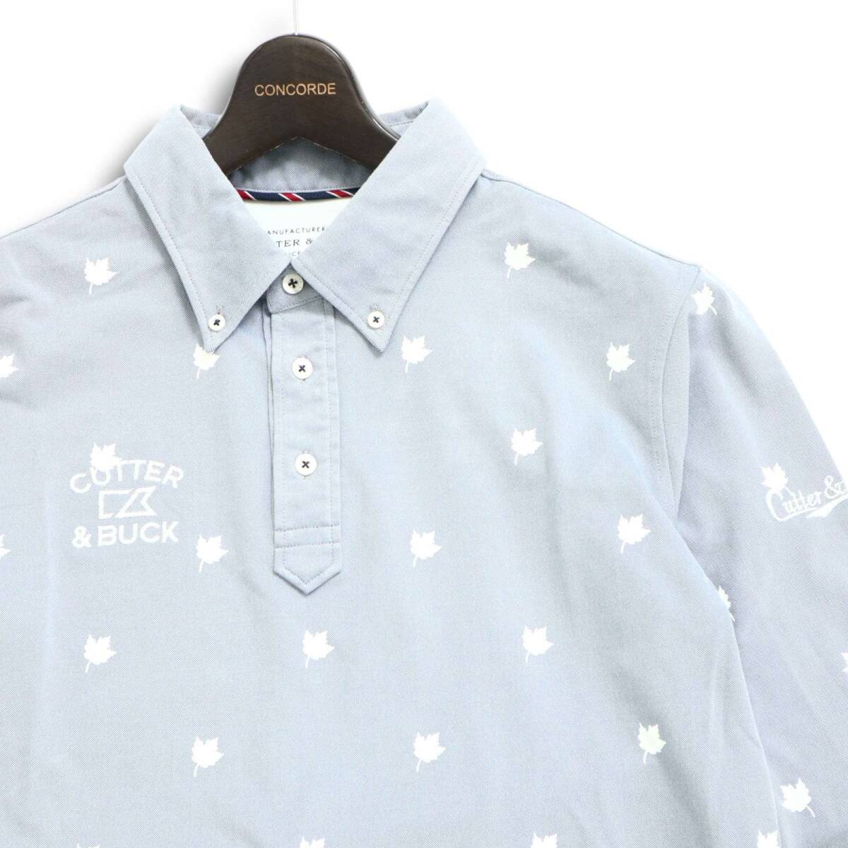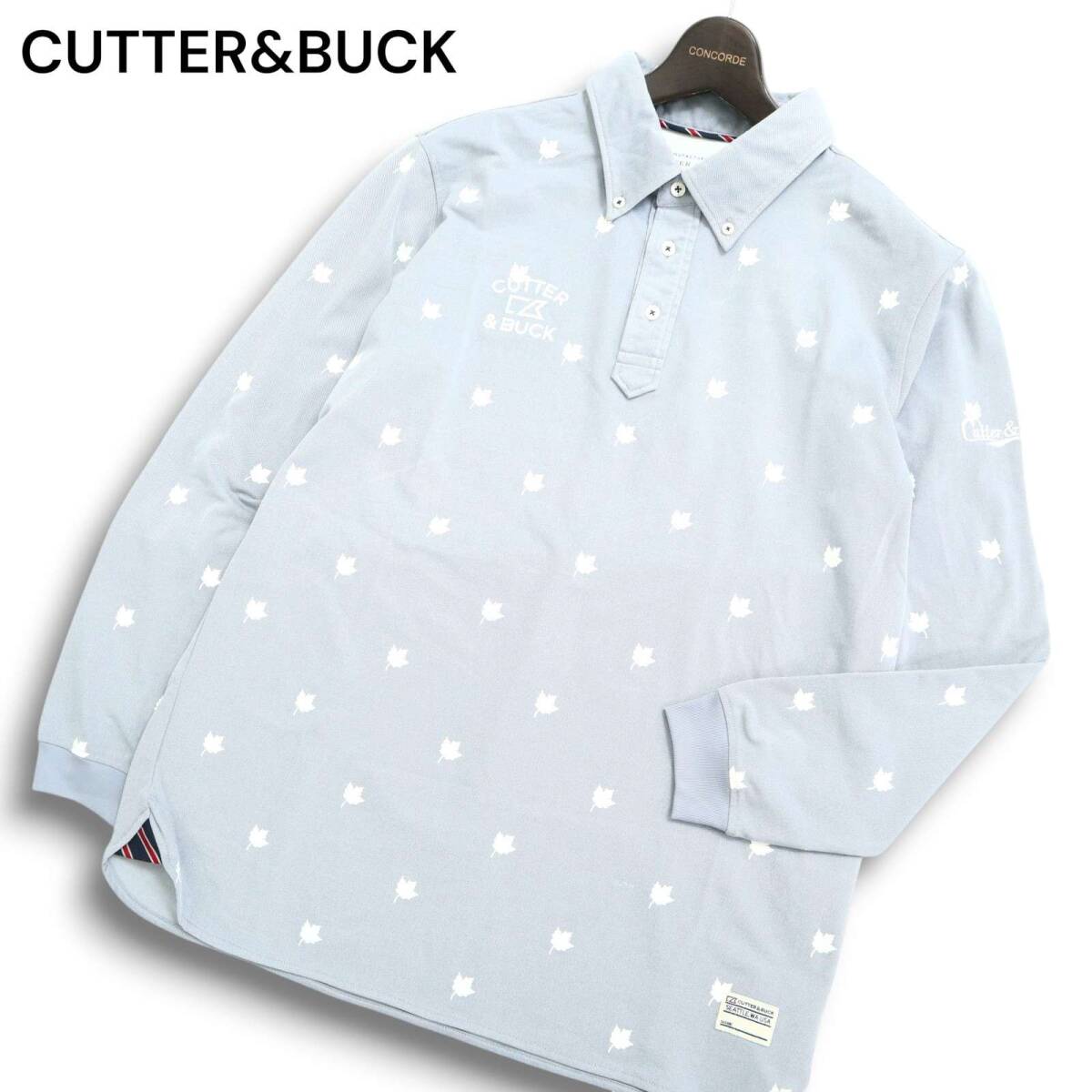 CUTTER&BUCK カッター&バック ゴルフ 通年★ 長袖 リーフ柄 切替 ボタンダウン ポロシャツ Sz.L メンズ