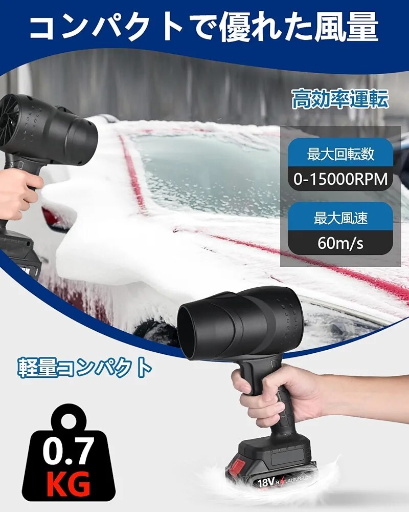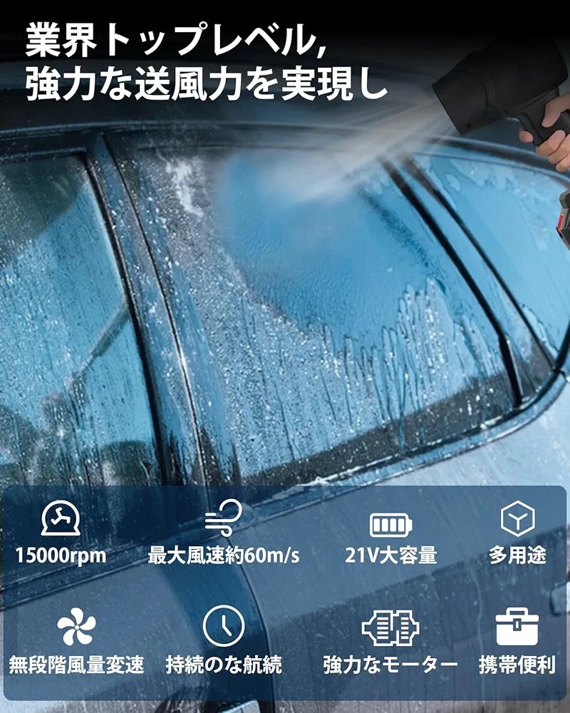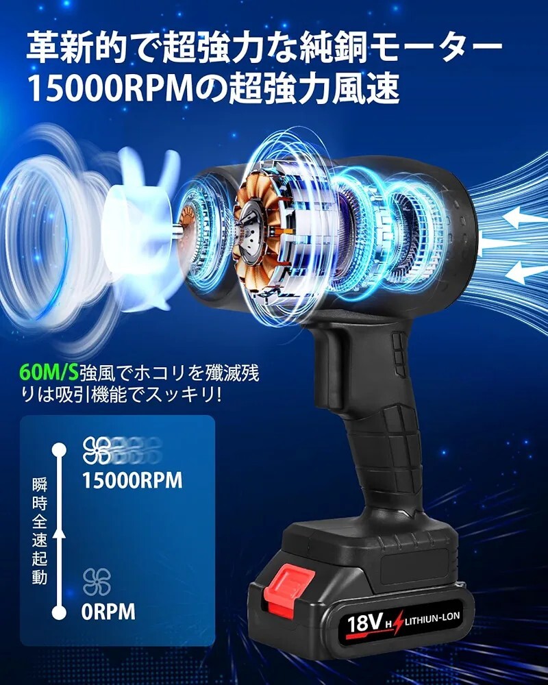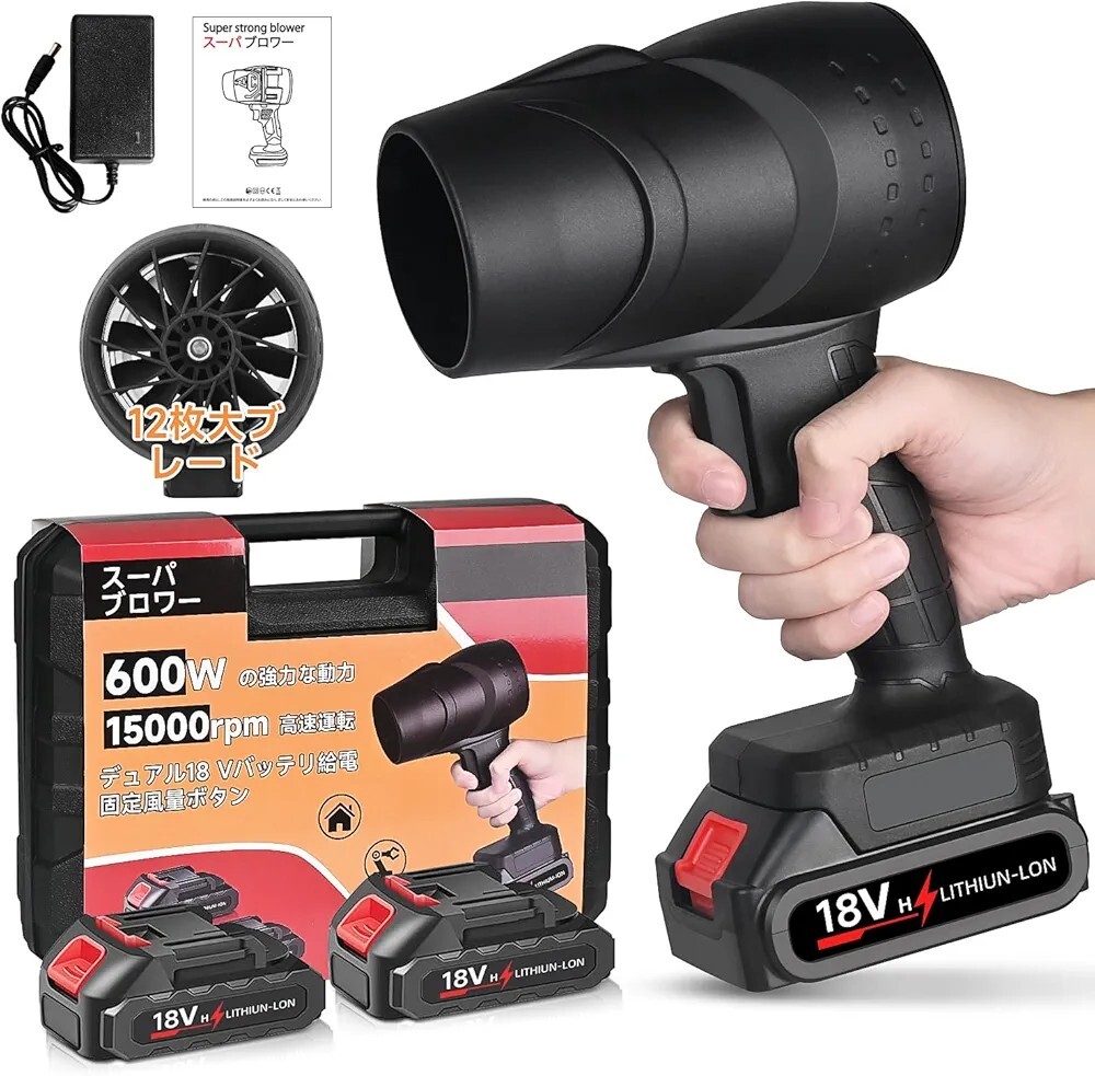 ブロワー 洗車 ブロワー エアダスター【新昇級版モデル 】 ジェットブロワー ターボジェットファン 65m/s 超強力 マキタ電池互換 15000rpm 高速回転 バッテリ一2個付き 軽量 コードレス ブロワー 強力 耐久性 高温耐性 ブロワー 小型 洗車/キーボード/パソコン/エアコン/網戸/フィギュア/バーベキュー
