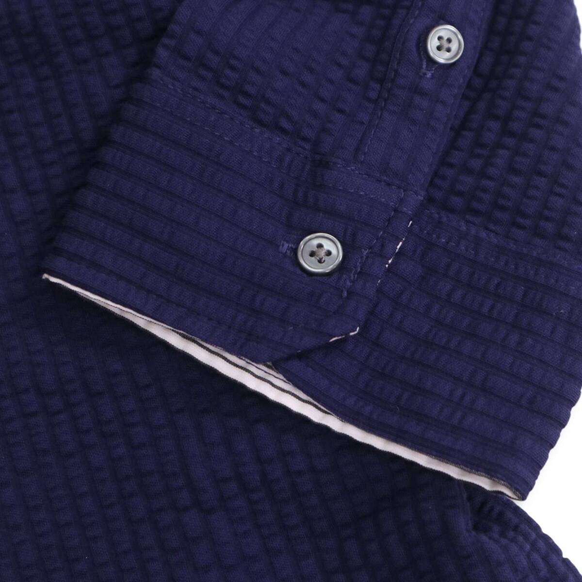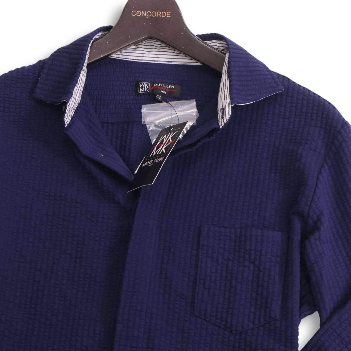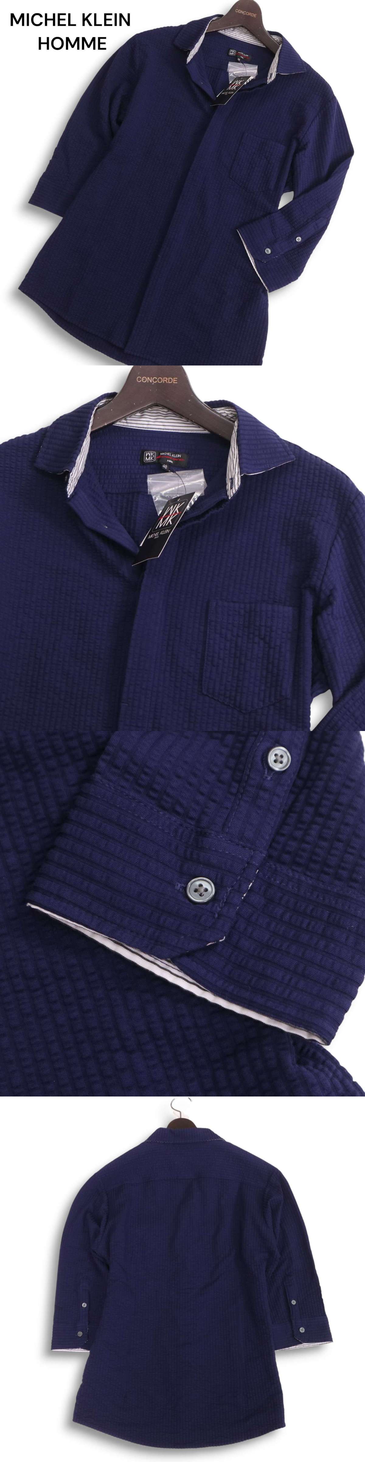 【新品 未使用】 MK HOMME ミッシェルクラン オム 春夏 シアサッカー★ 7分袖 ストレッチ ストライプ シャツ Sz.48 メンズ