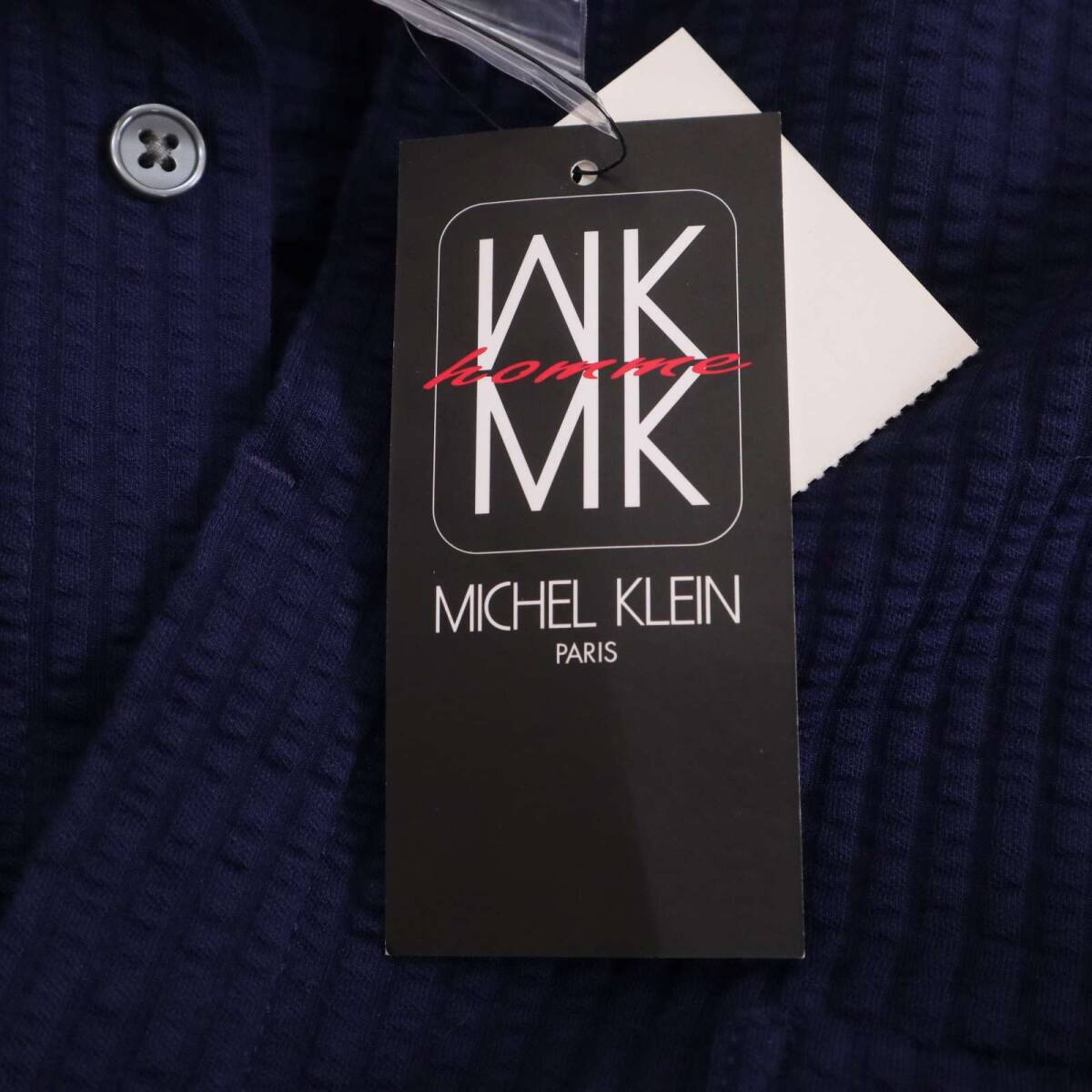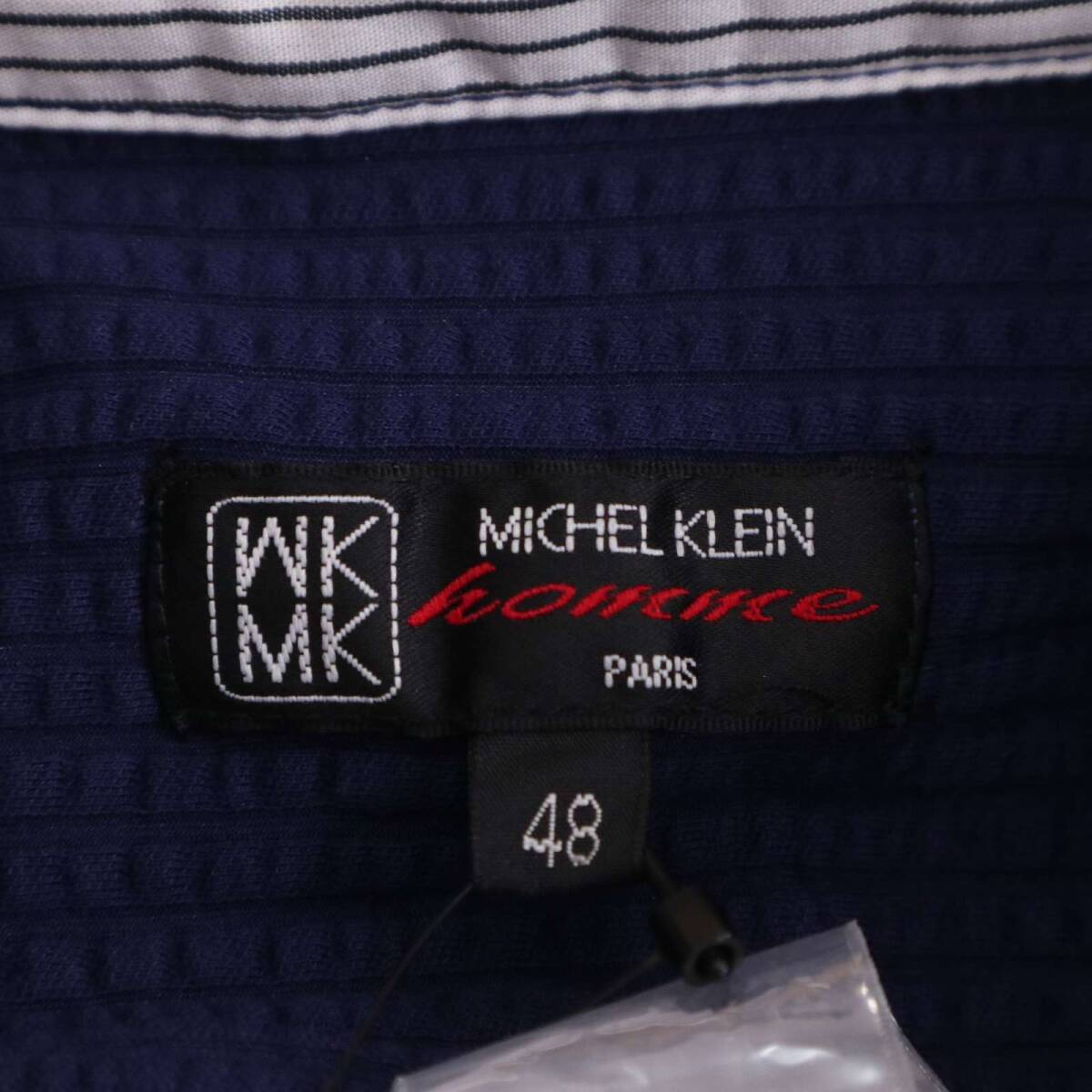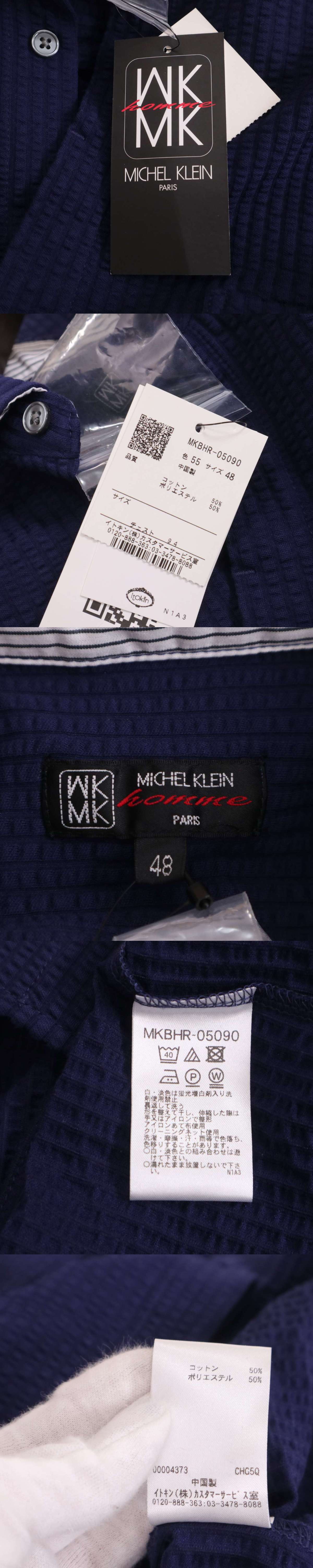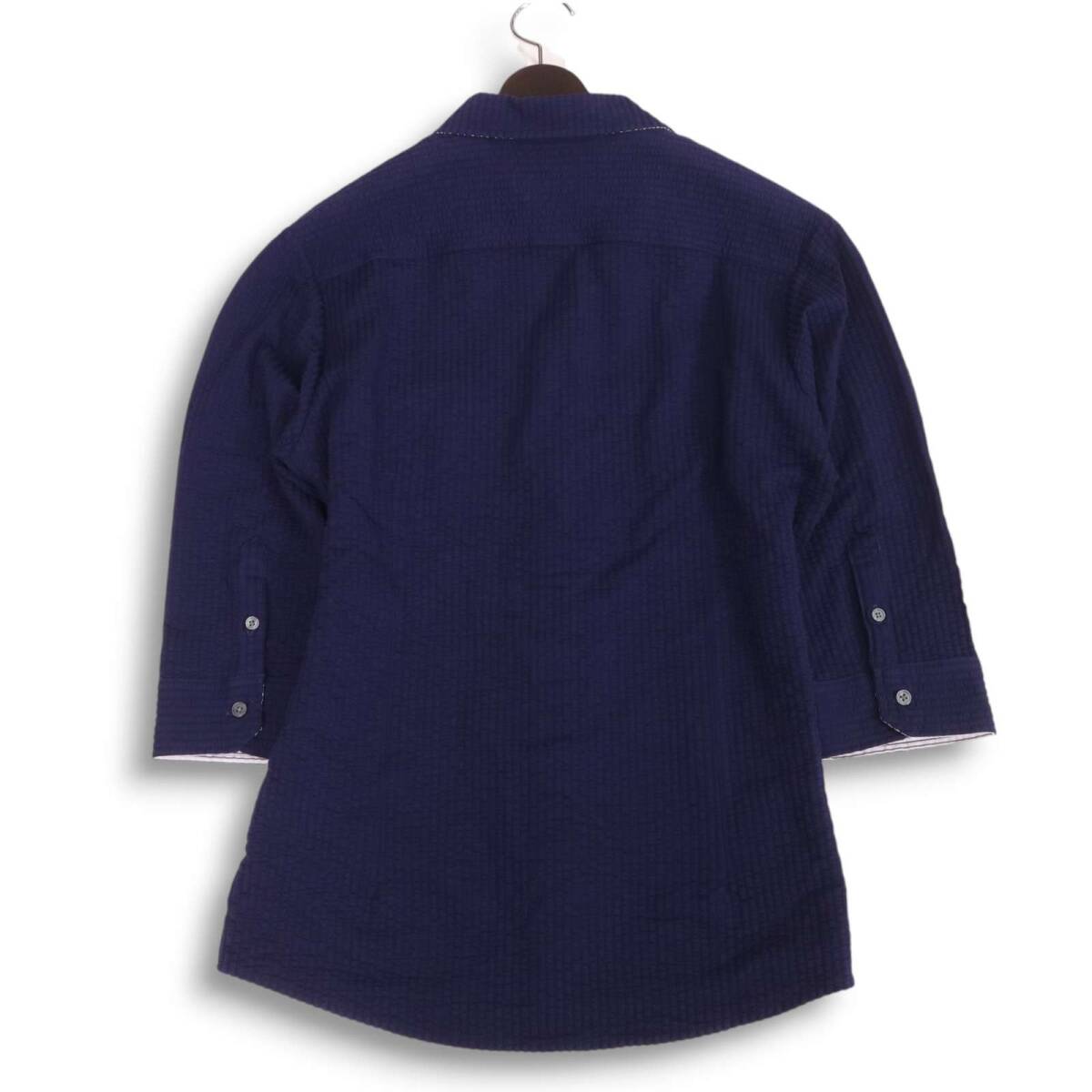 【新品 未使用】 MK HOMME ミッシェルクラン オム 春夏 シアサッカー★ 7分袖 ストレッチ ストライプ シャツ Sz.48 メンズ