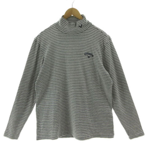 キャロウェイ CALLAWAY 長袖ハイネックシャツ 241-7254506 ロゴ刺繍 ボーダー 起毛 ホワイト 白 グレー LL メンズ