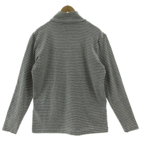 【仕様】長袖ハイネックシャツ 241-7254506 ロゴ刺繍 ボーダー 起毛