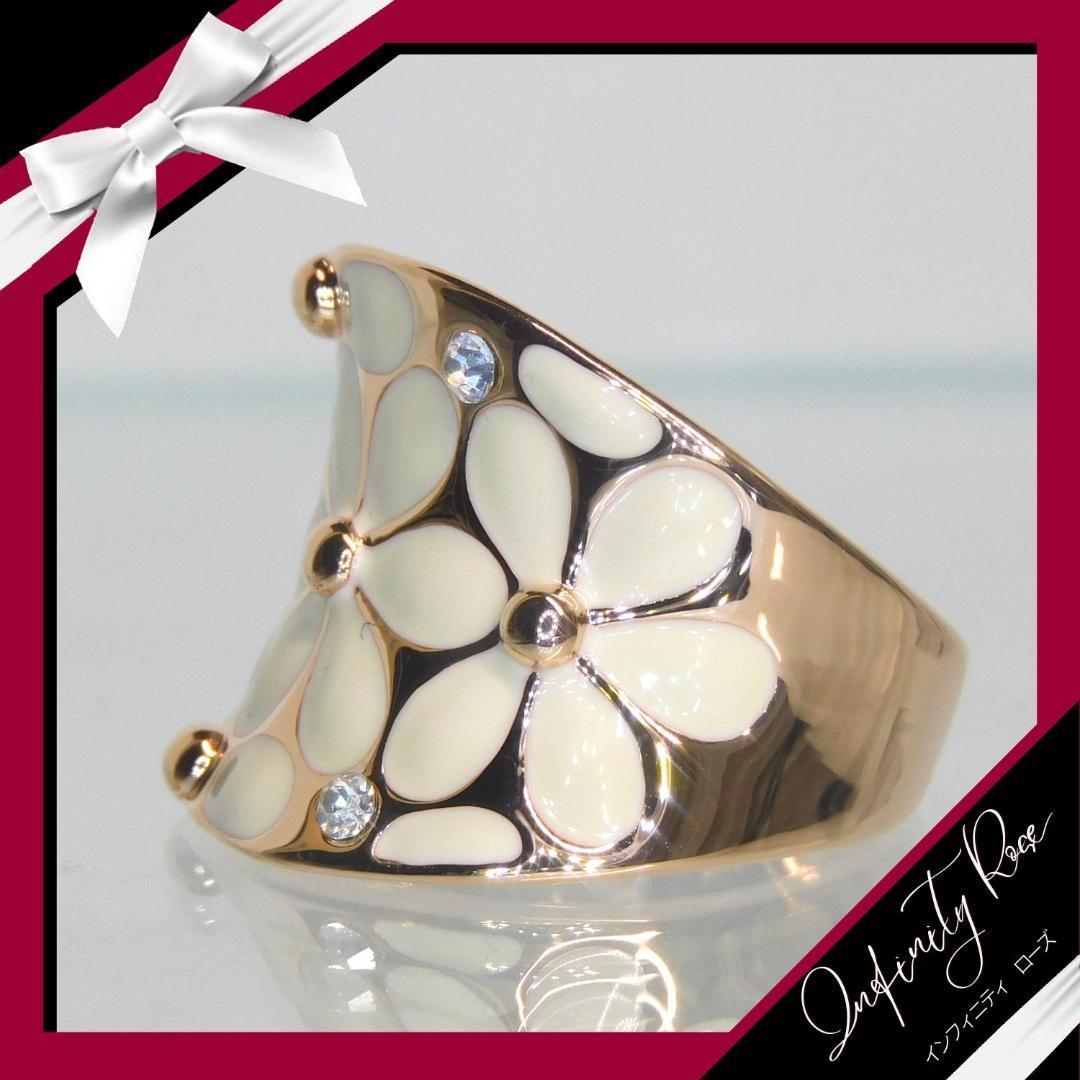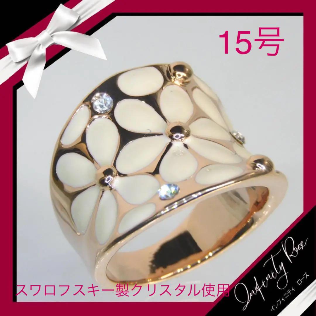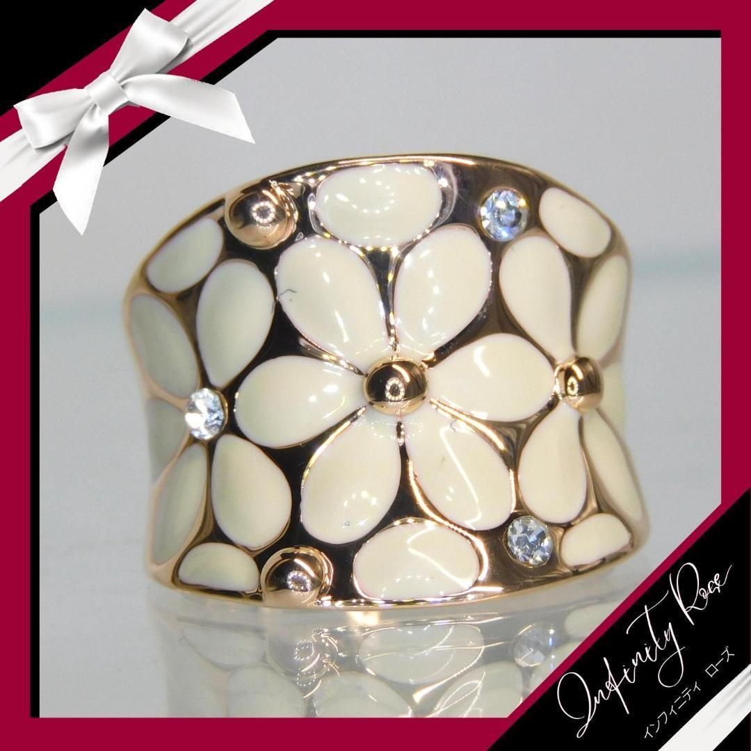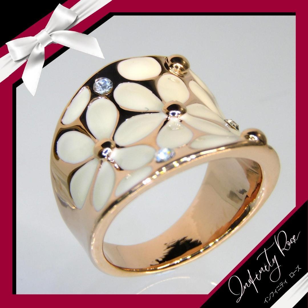 (1181)15号 ピンクゴールド×アイボリー2トーンフラワーリング 指輪 スワロフスキー製クリスタル使用