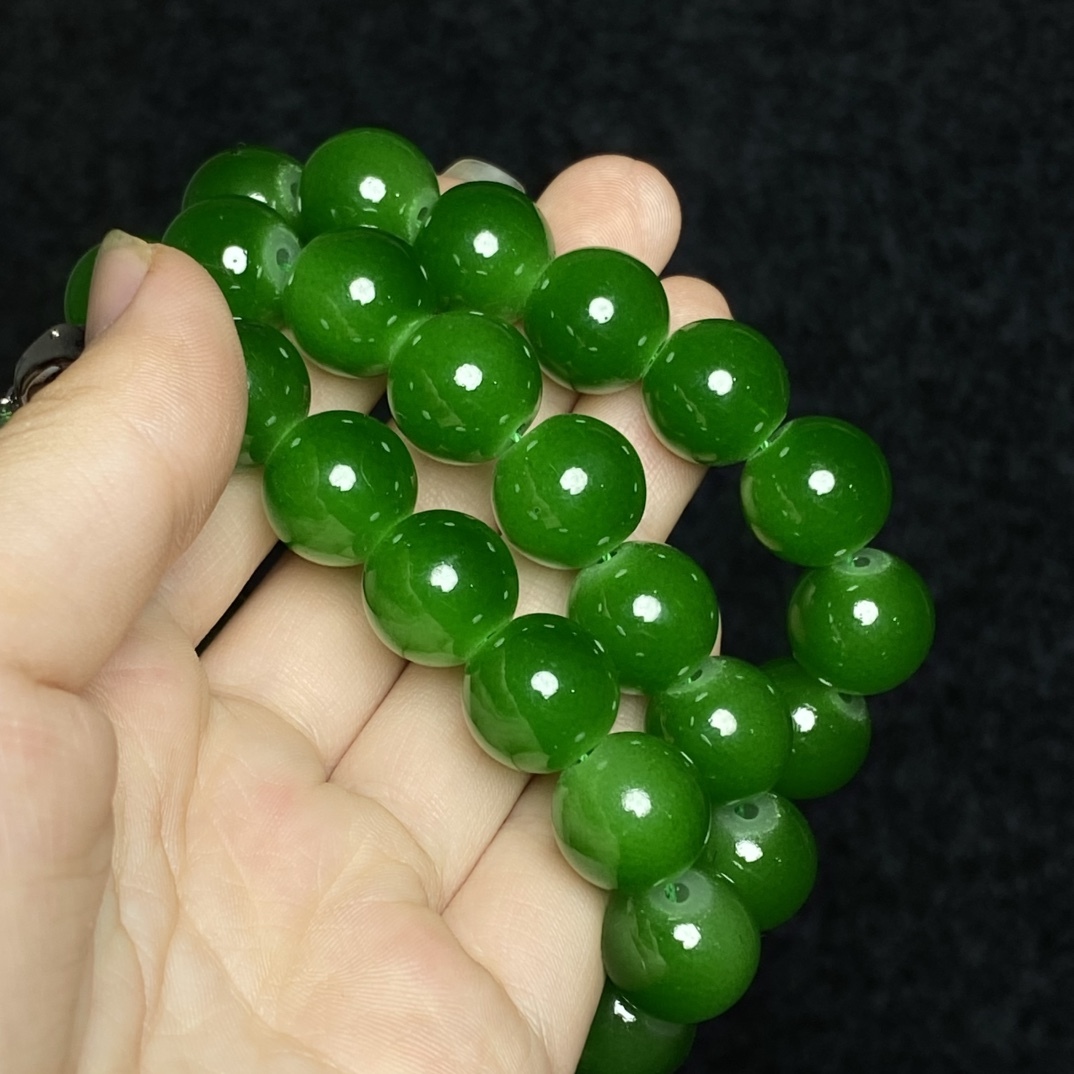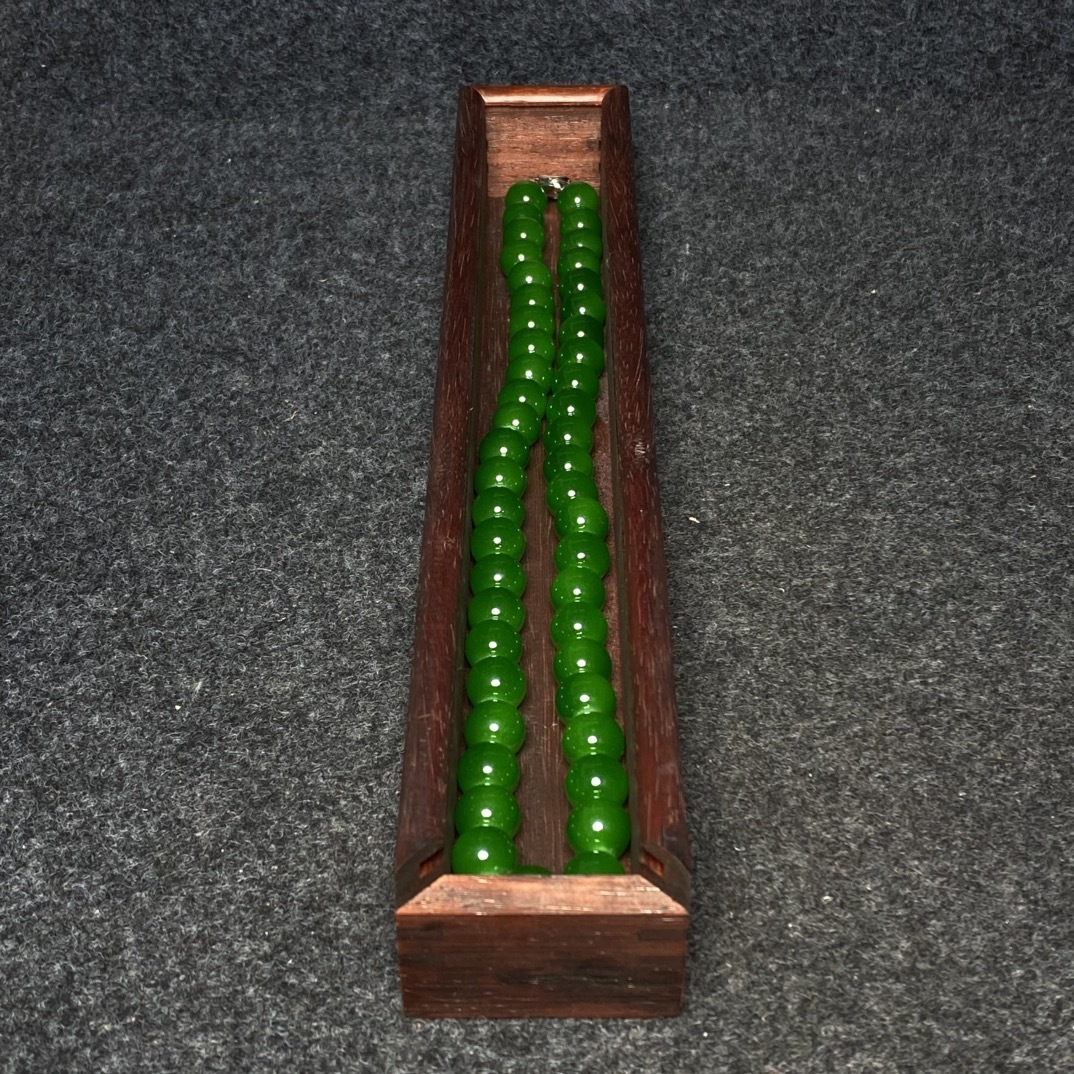 清代 宮藏 帝王綠 翡翠彫 綠翡翠 項鏈 仏珠 念珠 箱付 置物 時代物 古董品 骨董 旧家蔵出し 唐物 中国古玩 古美術品