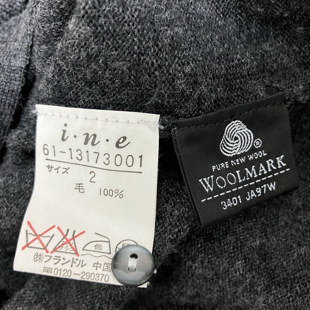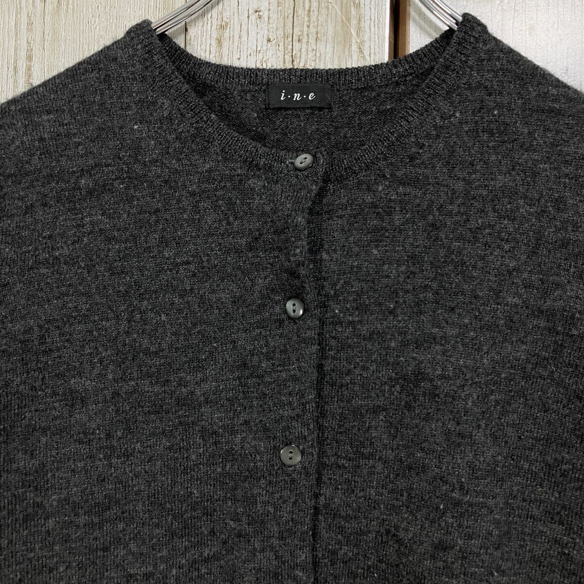 ☆i.n.e インエ☆カーディガン ニット [2] M タイト ダークグレー ウール100% レディース クルーネック [送料無料☆匿名配送] c5806