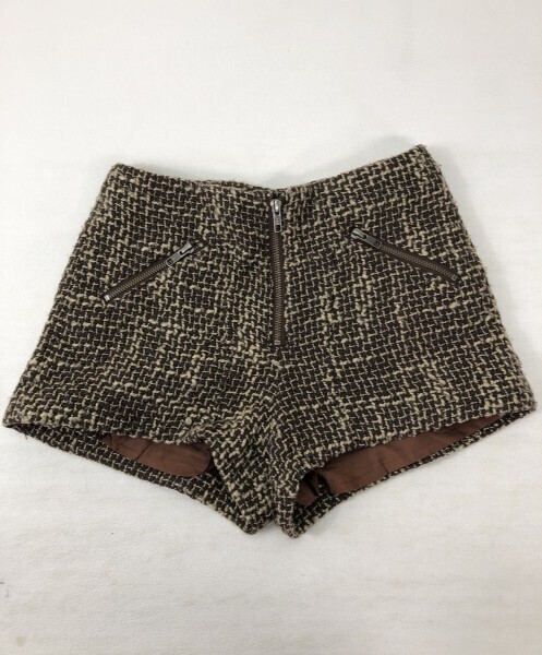 リエンダ rienda カジュアルモード 古着 ツイード ハーフ ショート パンツ ボトムス レディース ジップフライ 裏地付き XS 茶系 です。