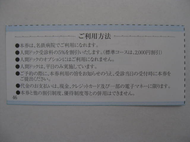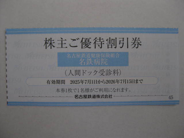 送料85円 複数有◆名鉄病院 人間ドック 受診料 割引券◆名鉄 株主優待 割引券◆有効期限 2026.7.15迄
