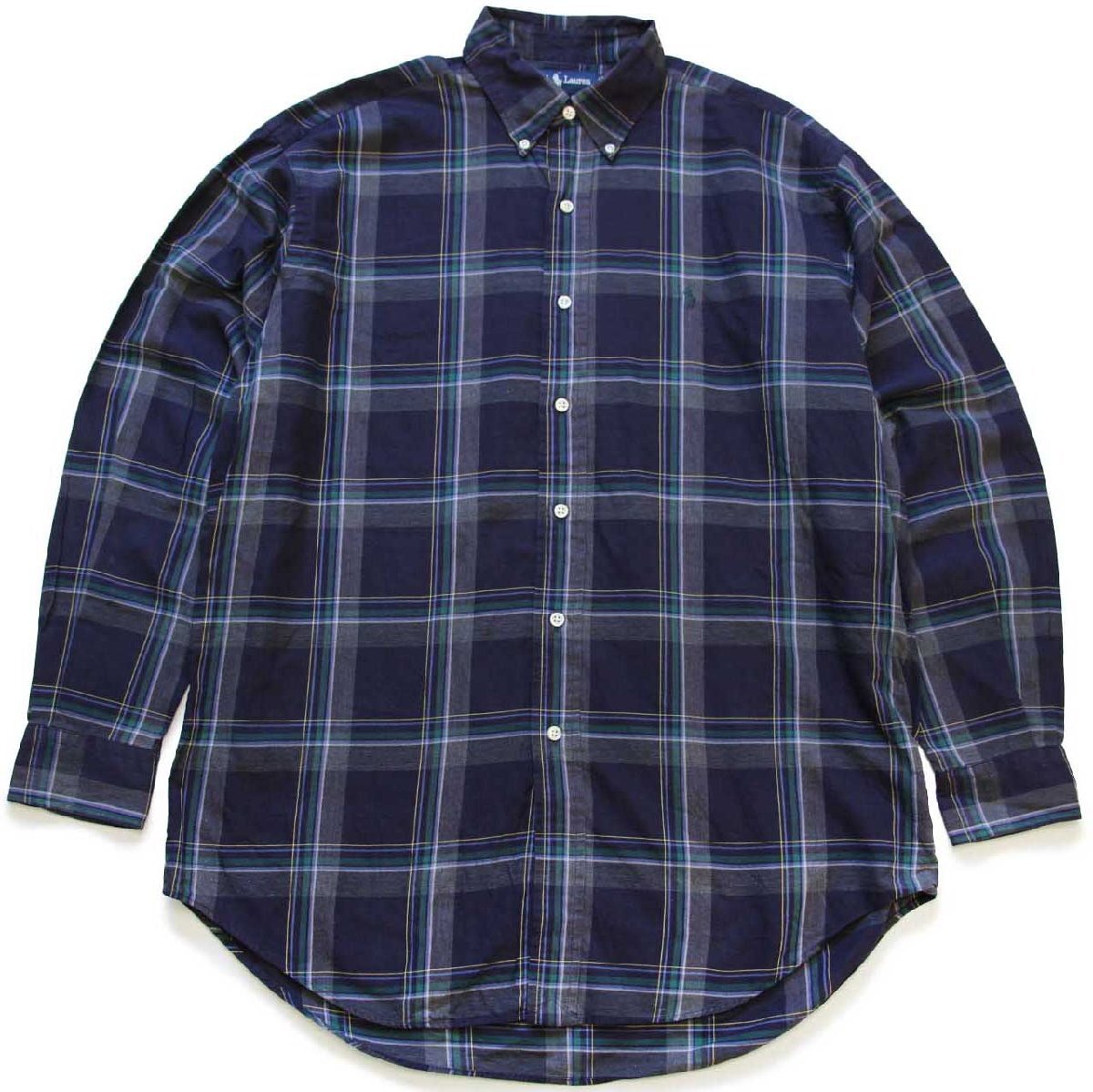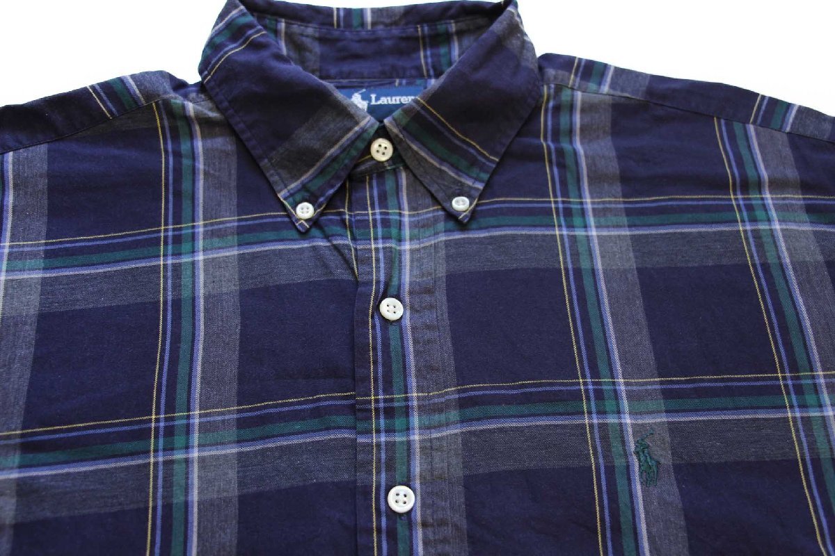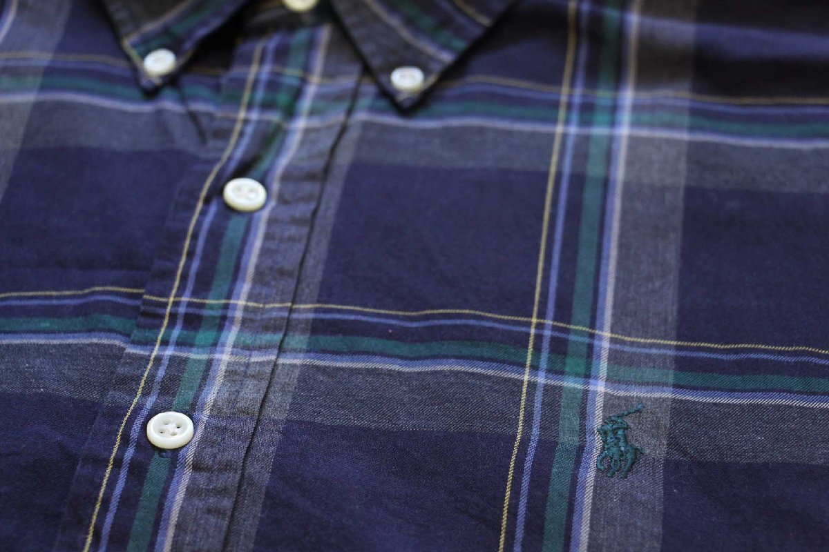 ★00s ラルフローレン BLAKE タータンチェック ボタンダウン コットンシャツ★76 オールド ロゴ刺繍 ワンポイント ビッグサイズ