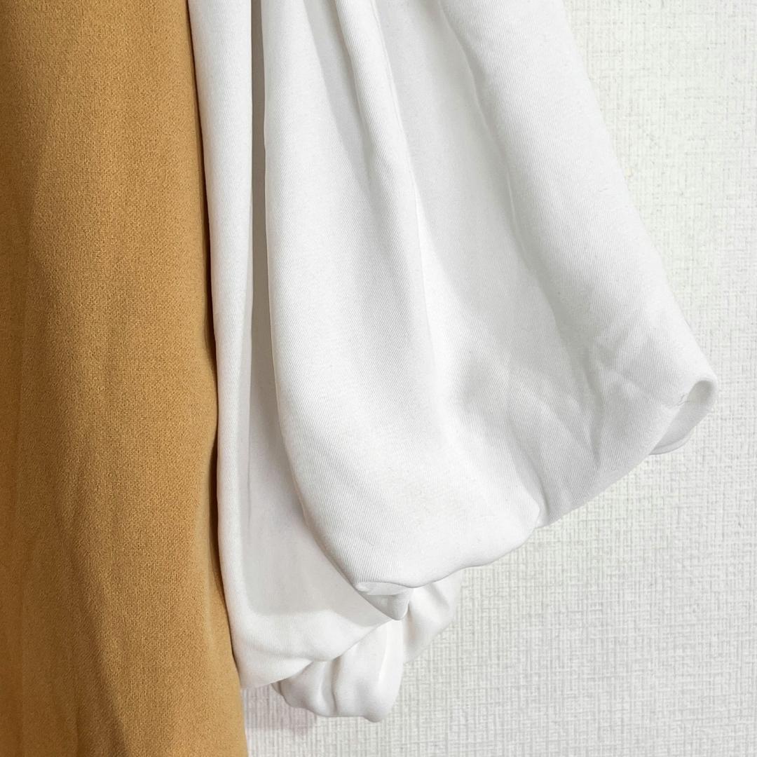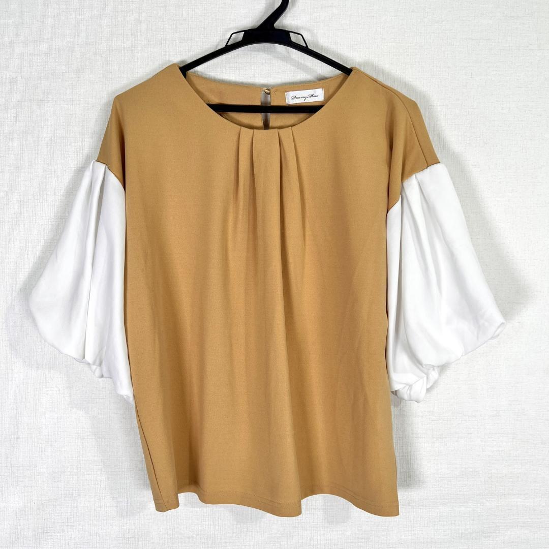 【Dreamy Thin】ドリーミーシン 日本織物中央卸商業組合連合会 ベージュ ホワイト 五分袖 カットソー トップス レディース Mサイズ【a012】