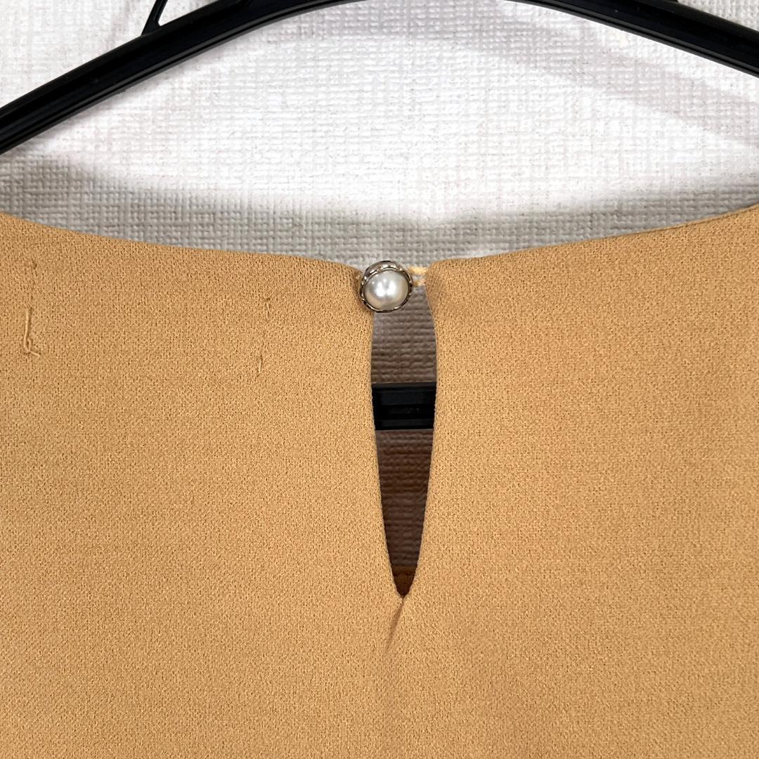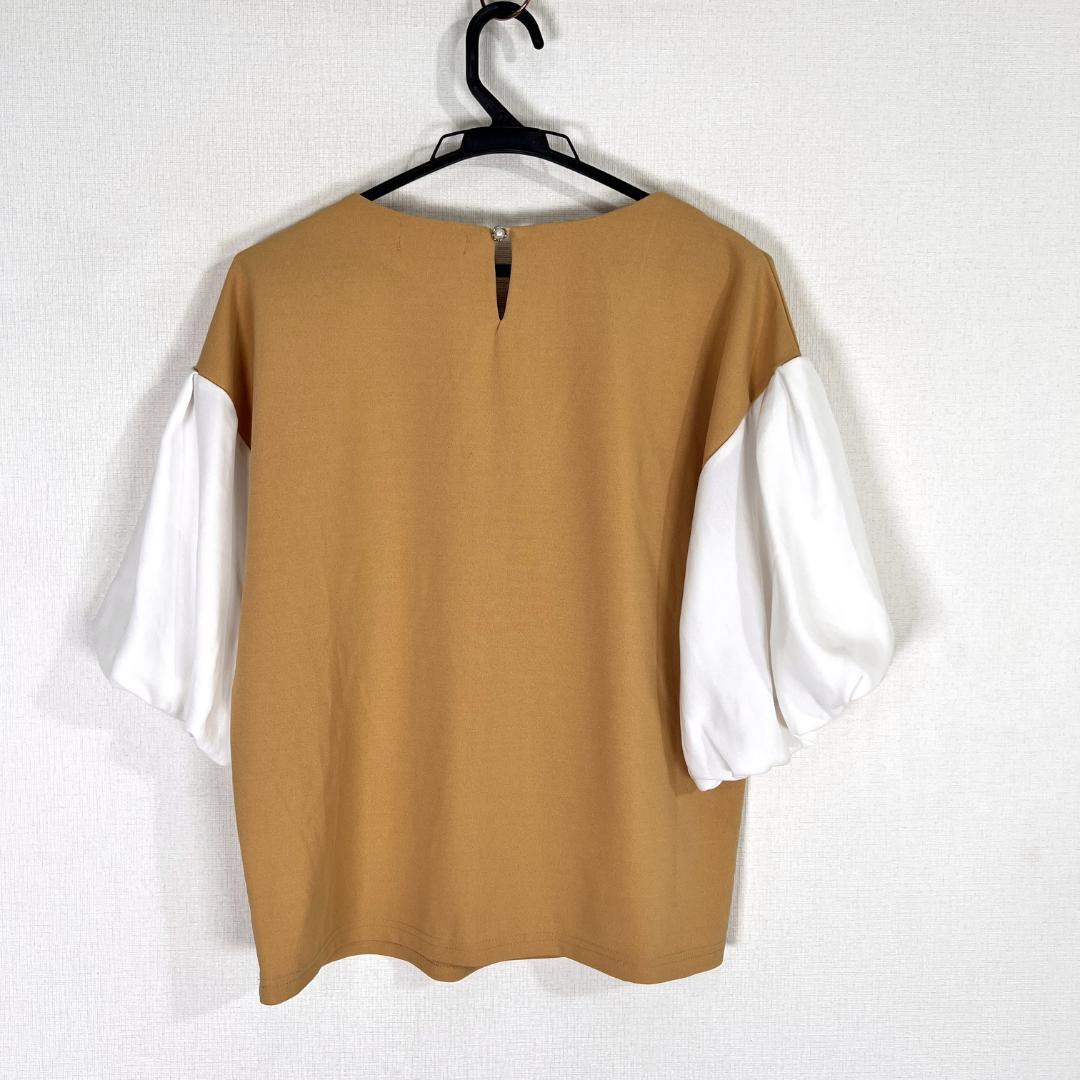 女性用のイエローベージュ系の半袖 五分袖 カットソー トップスです。