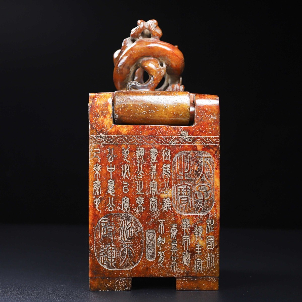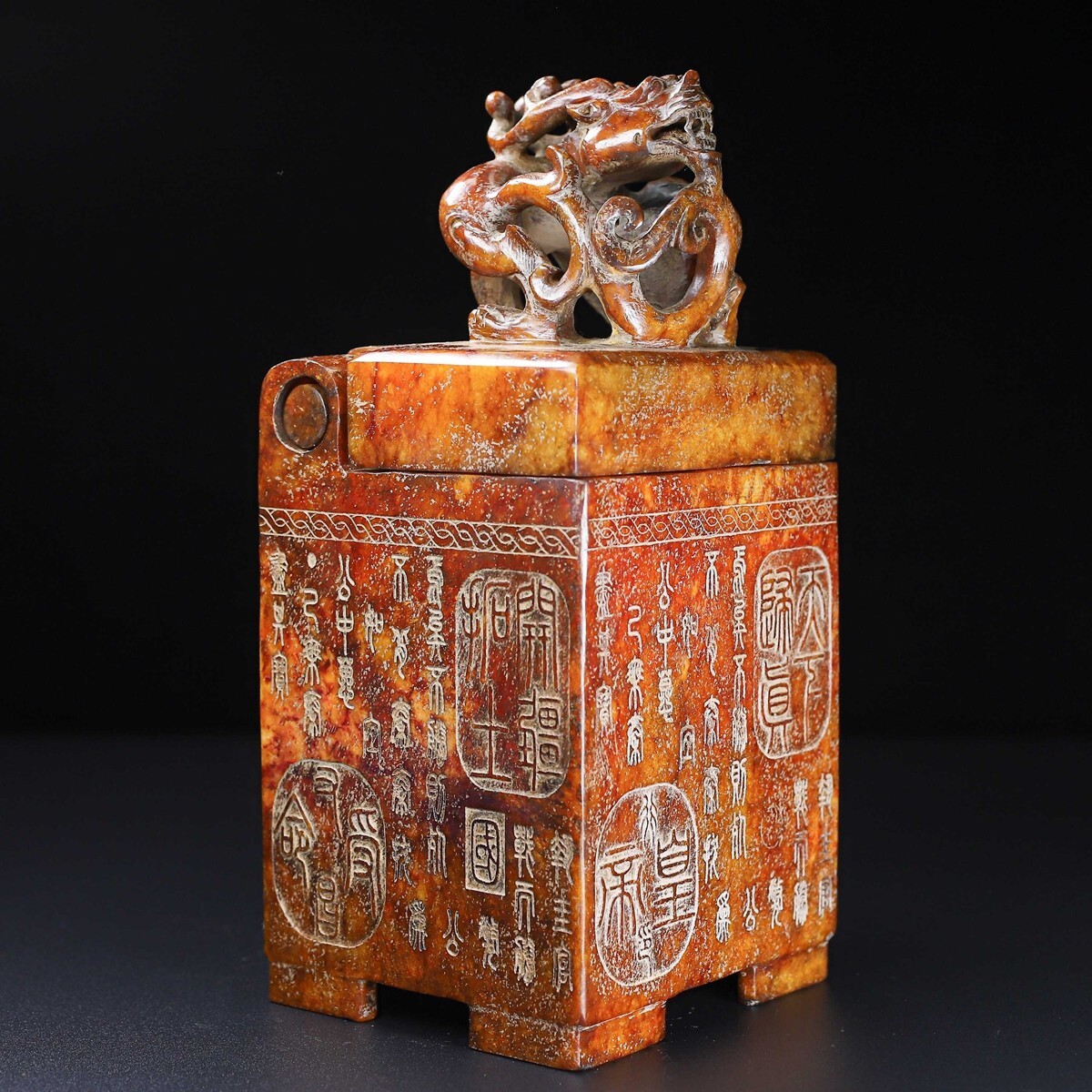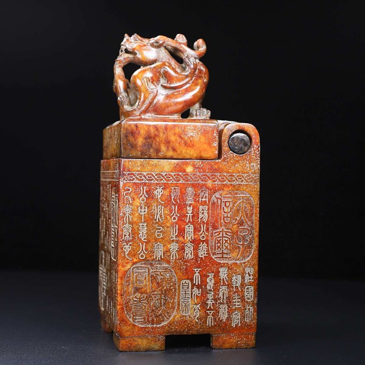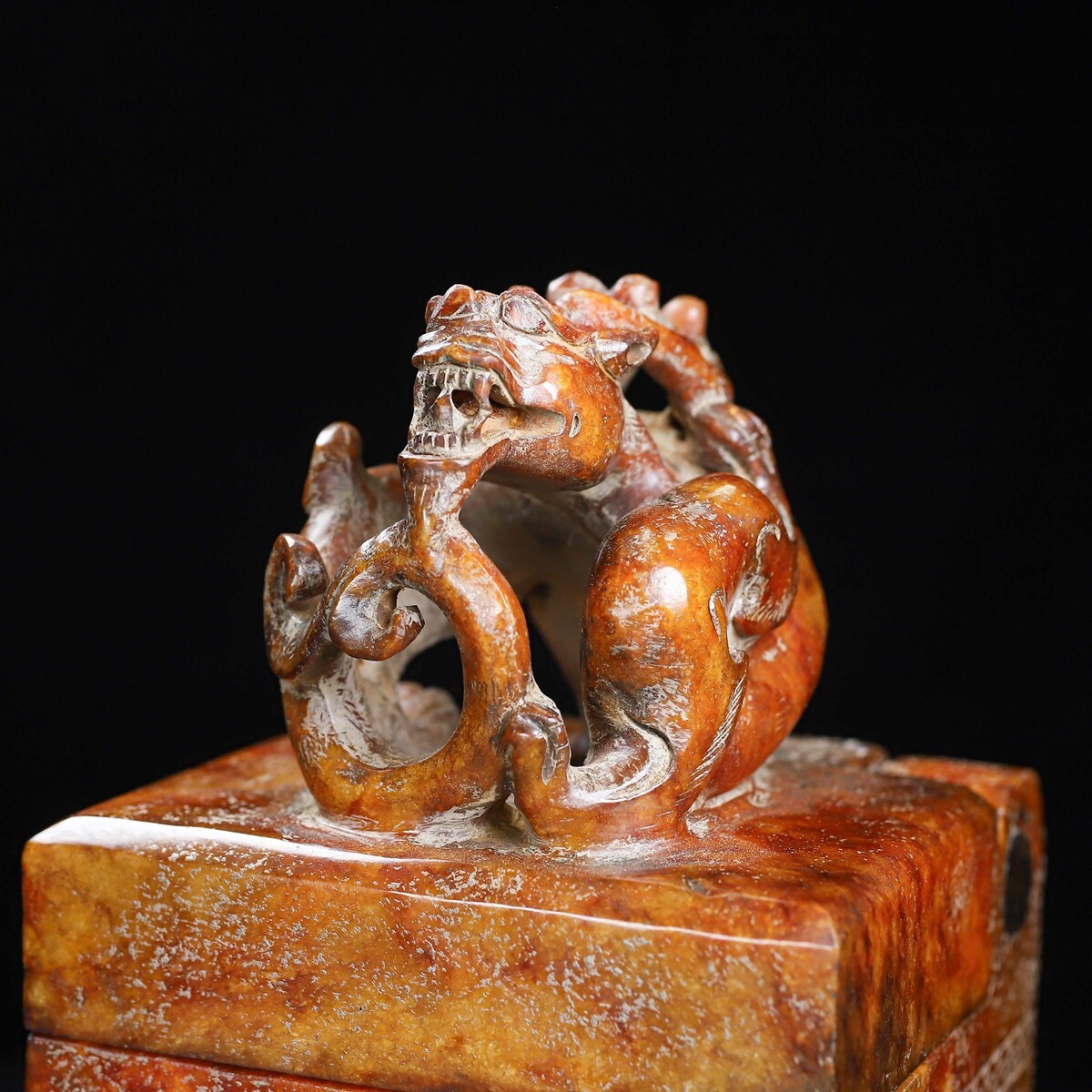 「戦國時期 和田玉 高古玉彫り 翻蓋龍鈕 盒印」極細工 賞物 中国古美術 旧蔵出