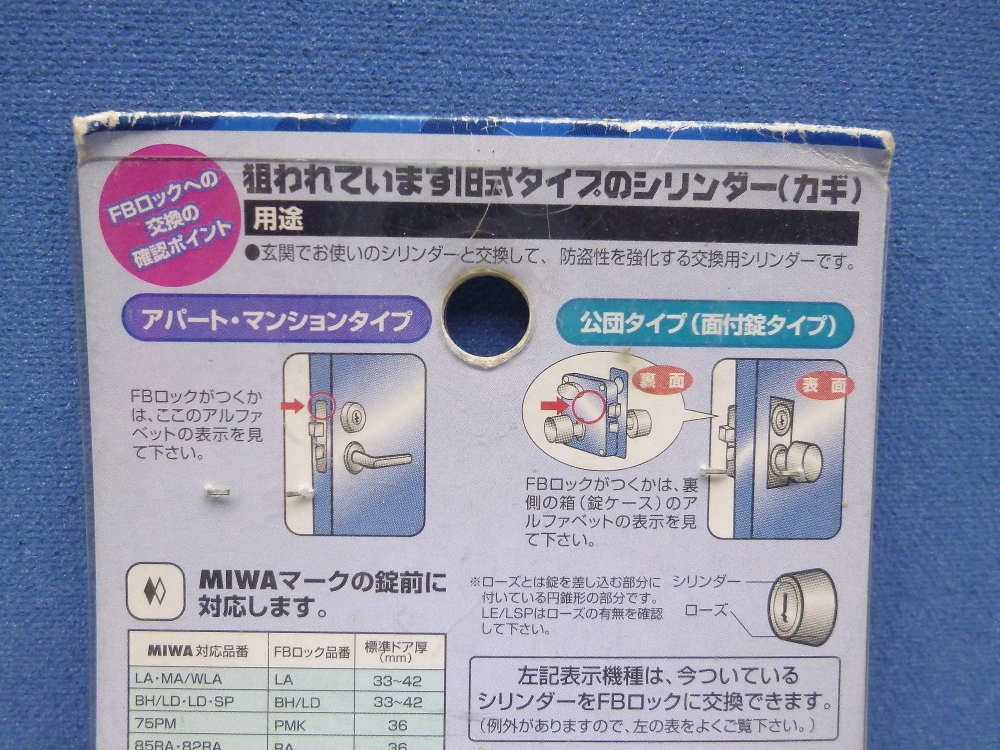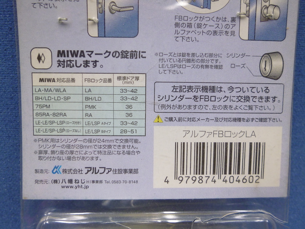 アルファ 取替用シリンダー FBロック LA 標準ドア厚33~42mm 未使用