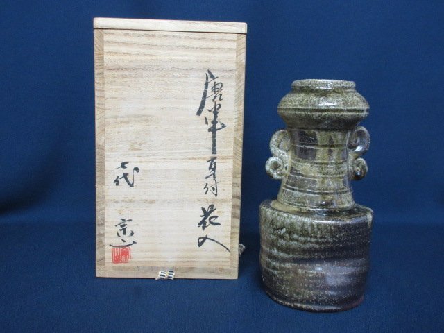 | ご覧頂きありがとうございます。 | 七代 山口宗山 作「唐津耳付花入」共箱 高さ約18cm 茶道具 花器 花瓶 送料無料 ot2-226 250826 |