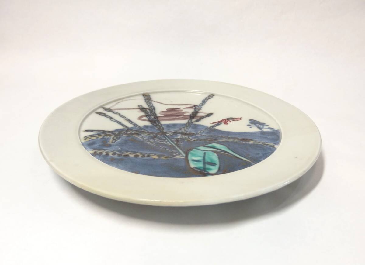 硲伊之助(三彩亭)作/九谷本窯上絵皿「秋」/希少品!