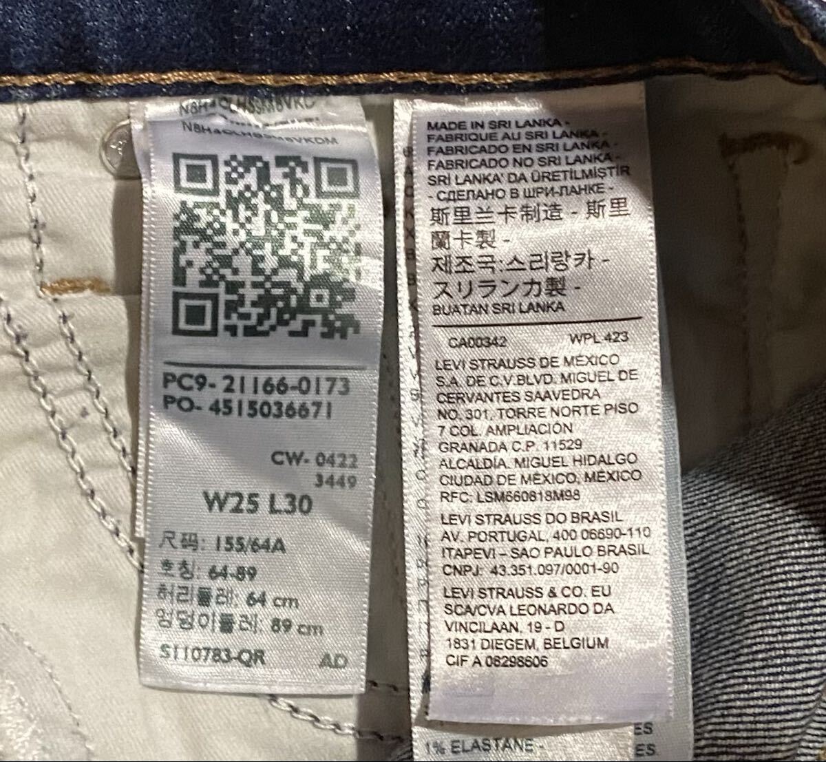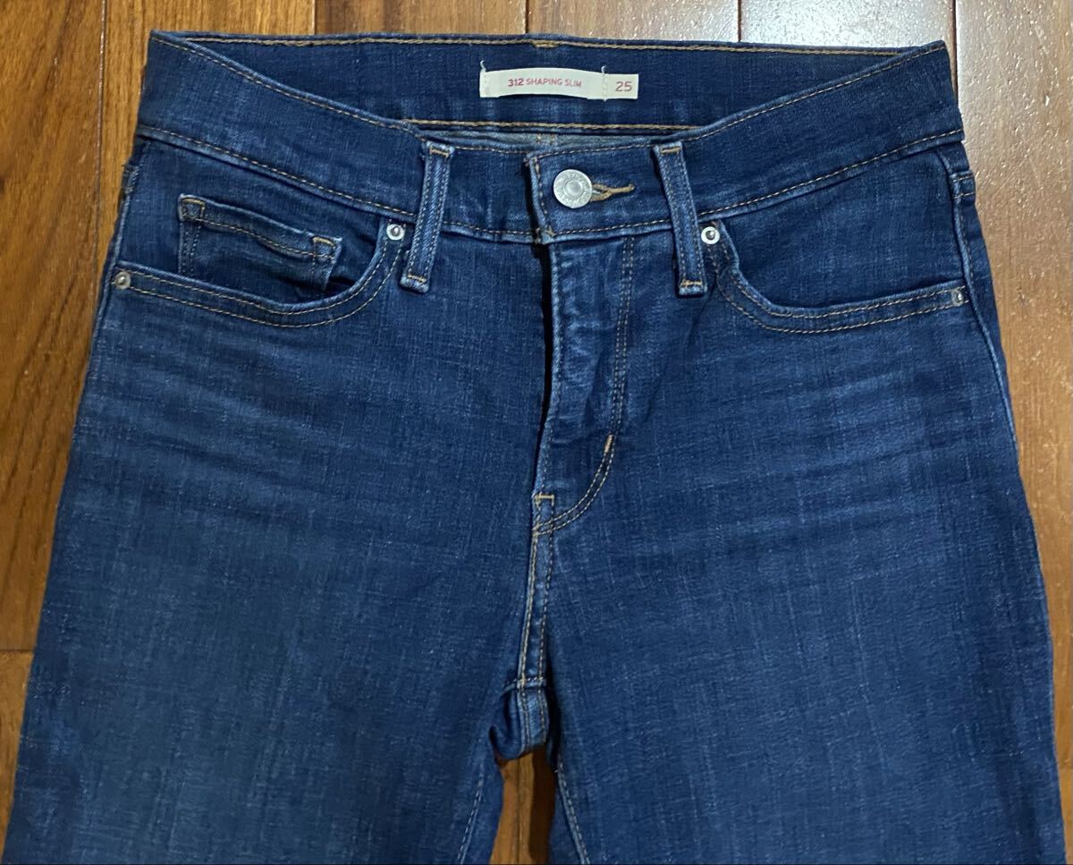 リーバイスのストレッチデニム(ジーンズ)、312 SHAPING SLIM 21166-0173です。色はインディゴブルーです。USEDですが状態は良いです(10段階中8程度)。生地はストレッチ入りで綿60%、レーヨン23%、ポリエステル16%、ポリウレタン1%です。紙パッチ、ジッパーフライです。正規品です(スリランカ製)。サイズはW25×L30でウエストは重ねずに平置きで約67cm、ヒップ約82cm、股上約22cm、股下約76cm、股下15cmのふともも部分約42cm、裾まわり約29cm、重量約470gです。発送はゆうパケットポストになります。