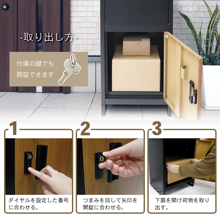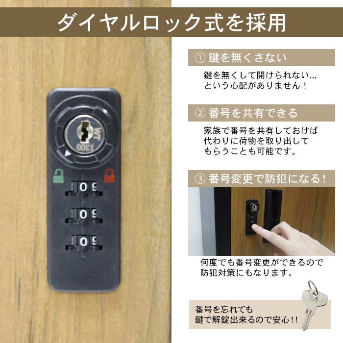 ※初期解錠番号は「000」に設定されて出荷します。配送時の状況でダイヤルロックがずれて扉が開かない場合があります。その際は番号を「000」に合わせてください。