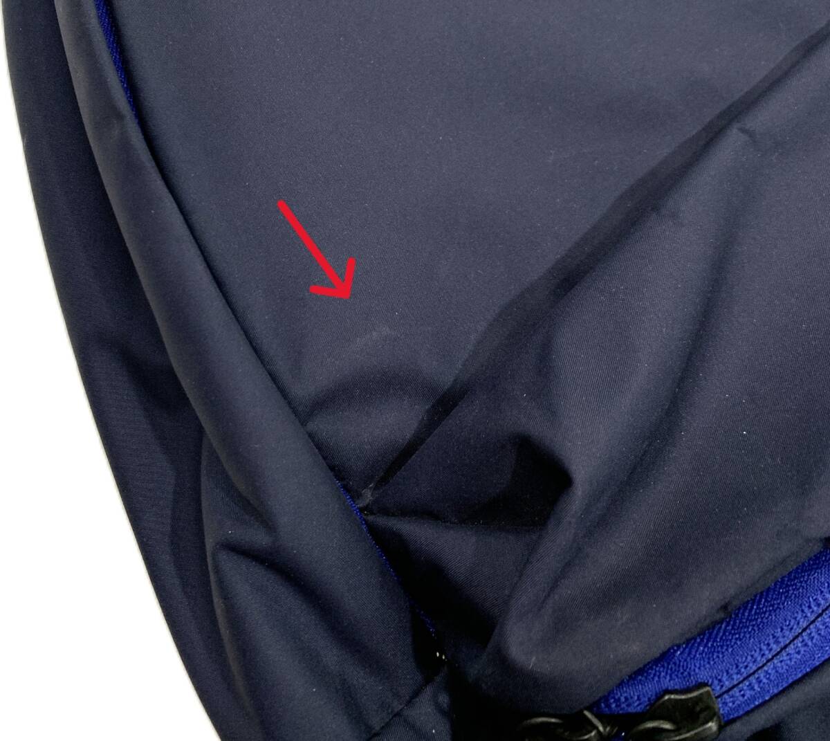 状態:内側に黒い汚れ(写真5枚目)、マチ面に薄汚れ・縁にスレがあり(6枚目)、ショルダーストラップの裏面にスレがあります(7枚目)。また写真8.9枚目の薄いスレや汚れが全体に数か所あります。
