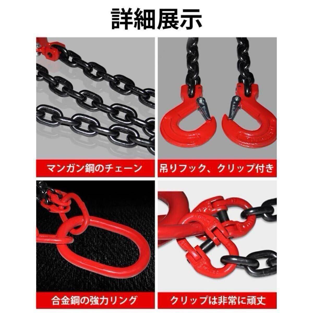スリングチェーン 4本吊り 2m 耐荷重3t スリングフックタイプ チェーンフック 吊りクランプ 吊りベルト チェーンブロック 吊り具 (使用荷重:3.0t )
