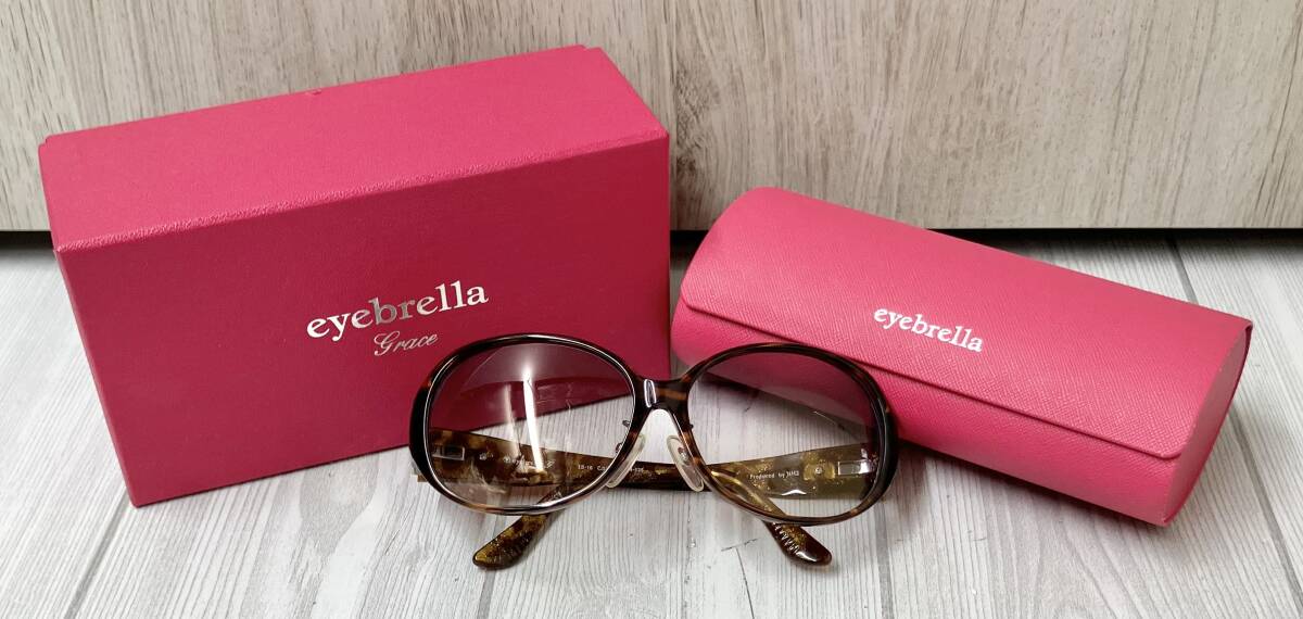 ブランド名: eyebrella レンズ幅:約6cm ブリッチ幅:約1.5cm テンプル長さ:約14cm レンズ高さ:約5cm カラー:ブラウン系 付属品:箱、ケースつき |