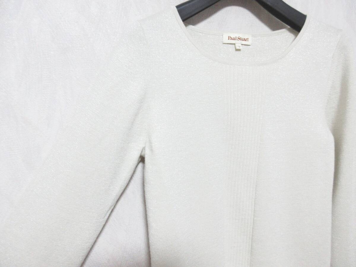 ポールスチュアート PAUL STUART ウール 長袖ニット ラメ ライトベージュ 6 亥5658