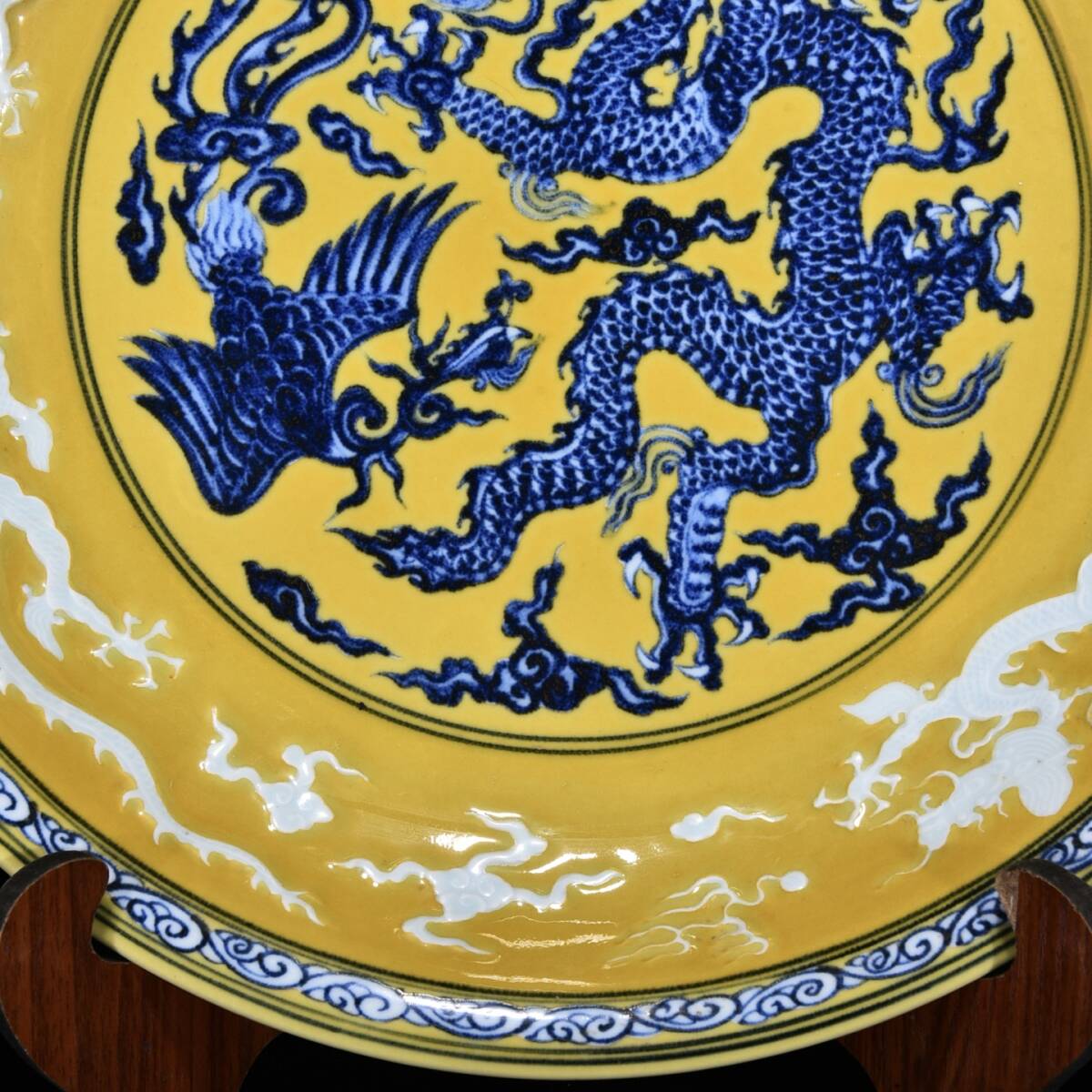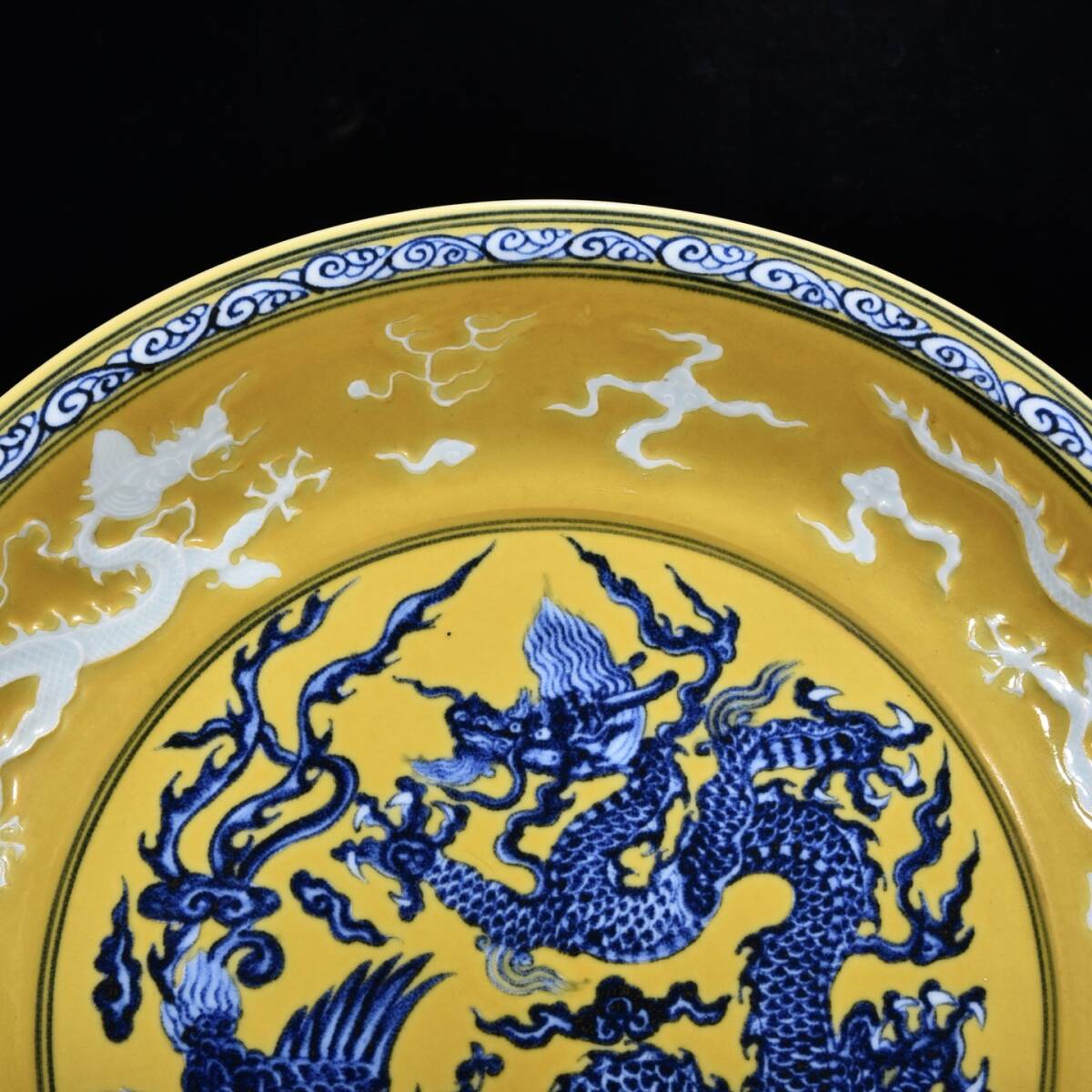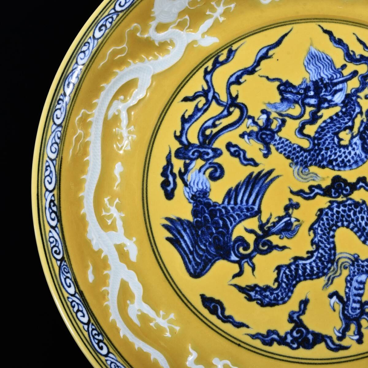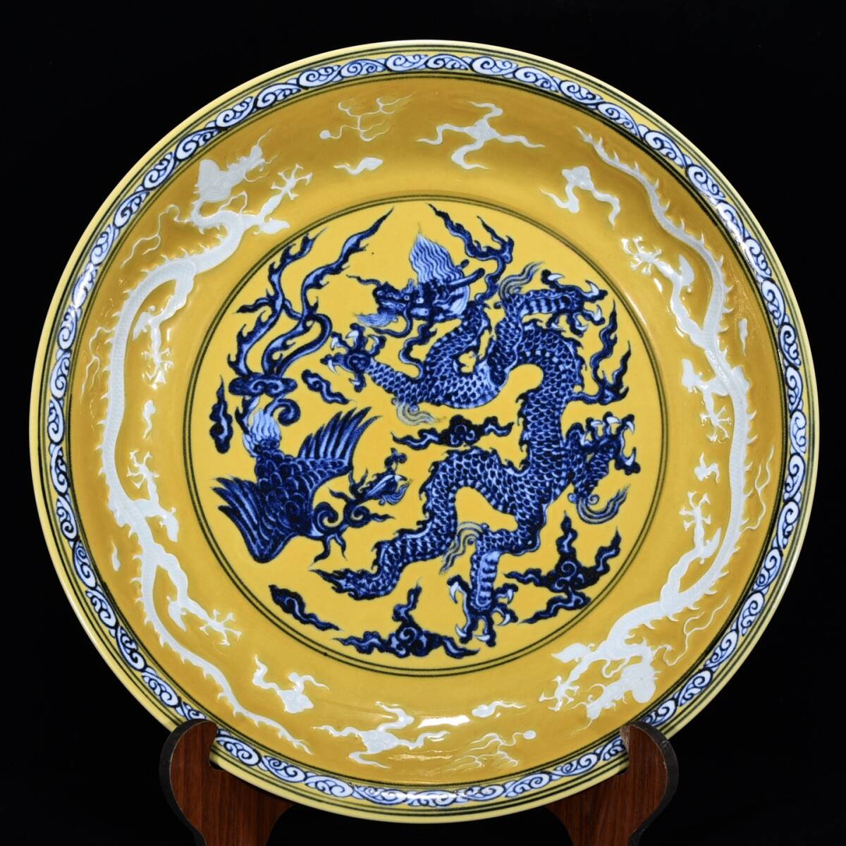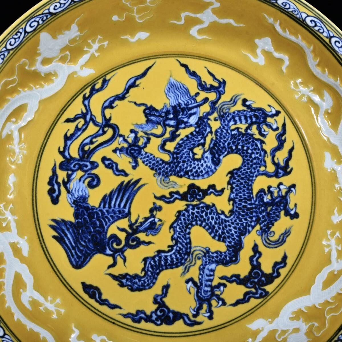 | 人間国宝 古磁器 白磁【明宣徳黄地青花龍鳳紋盤です】 工芸品 陶芸 磁器 置物 收藏品 時代物 中国美術 | |||