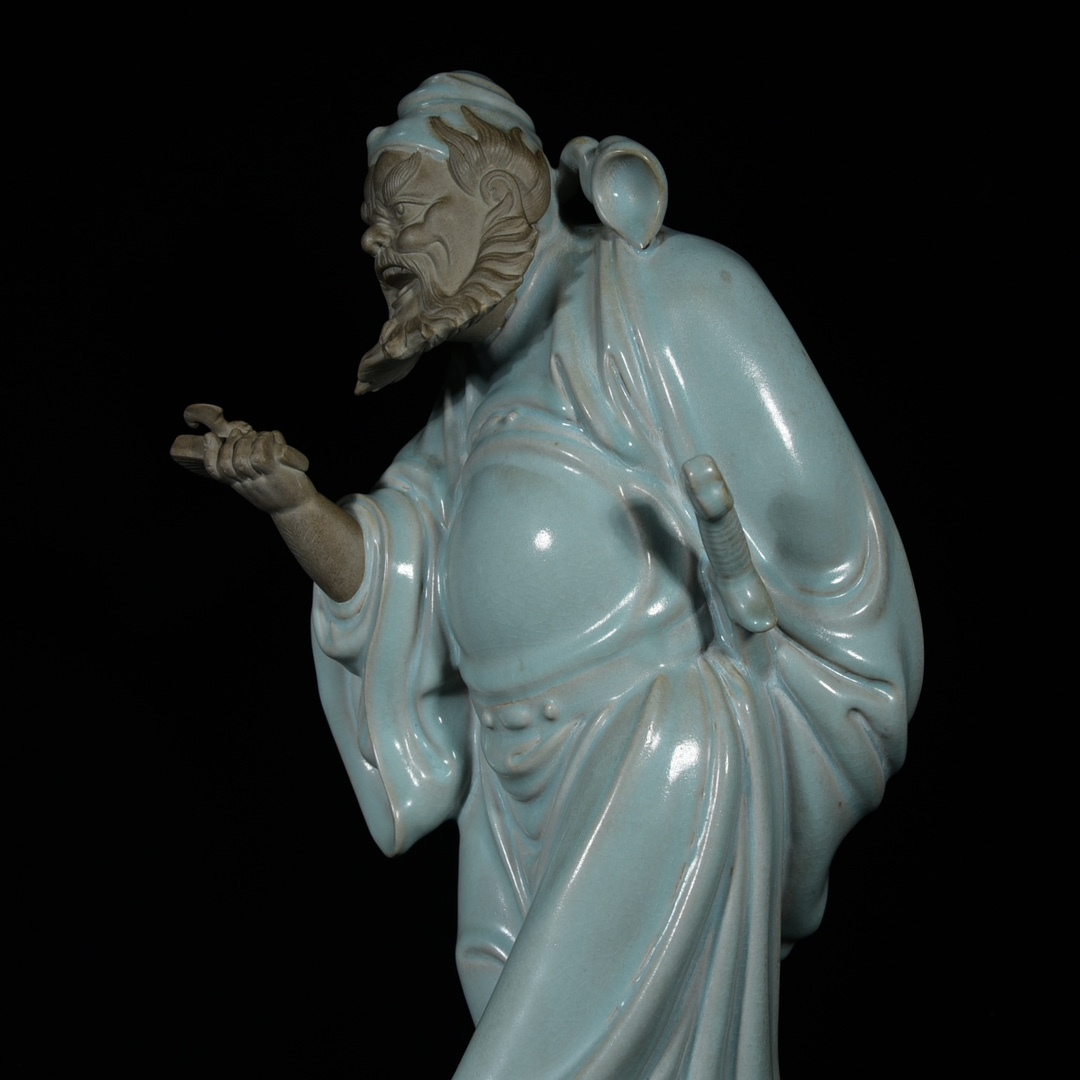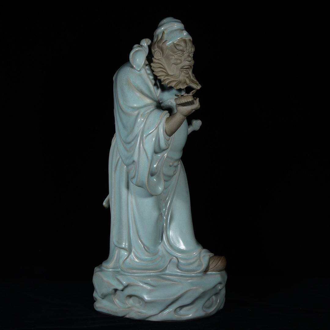 *珍品旧蔵* 宋 汝窯 天青釉 鍾馗 陶芸 古陶磁器 中国磁器 極細工 唐物 中国古玩 骨董品 古美味 H48
