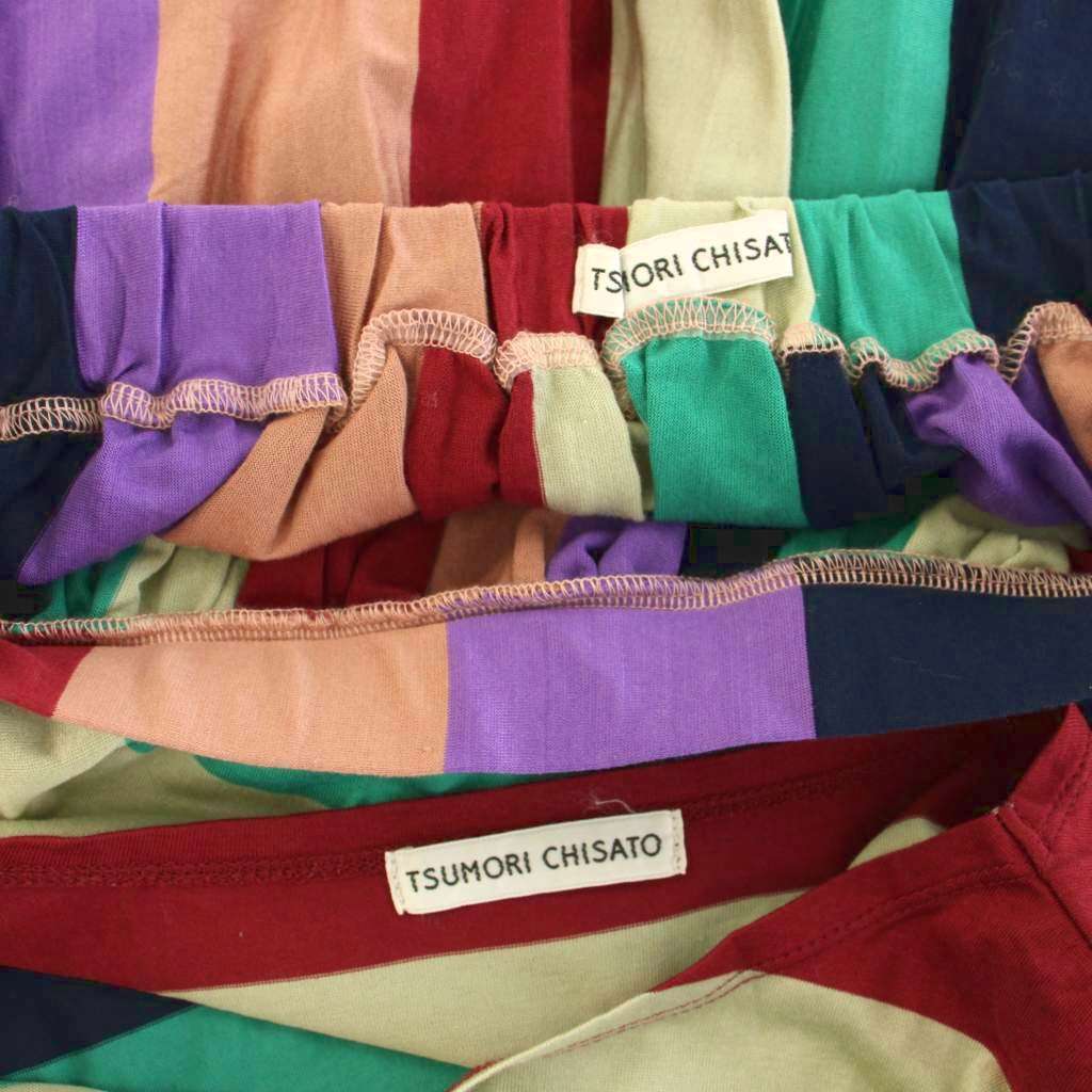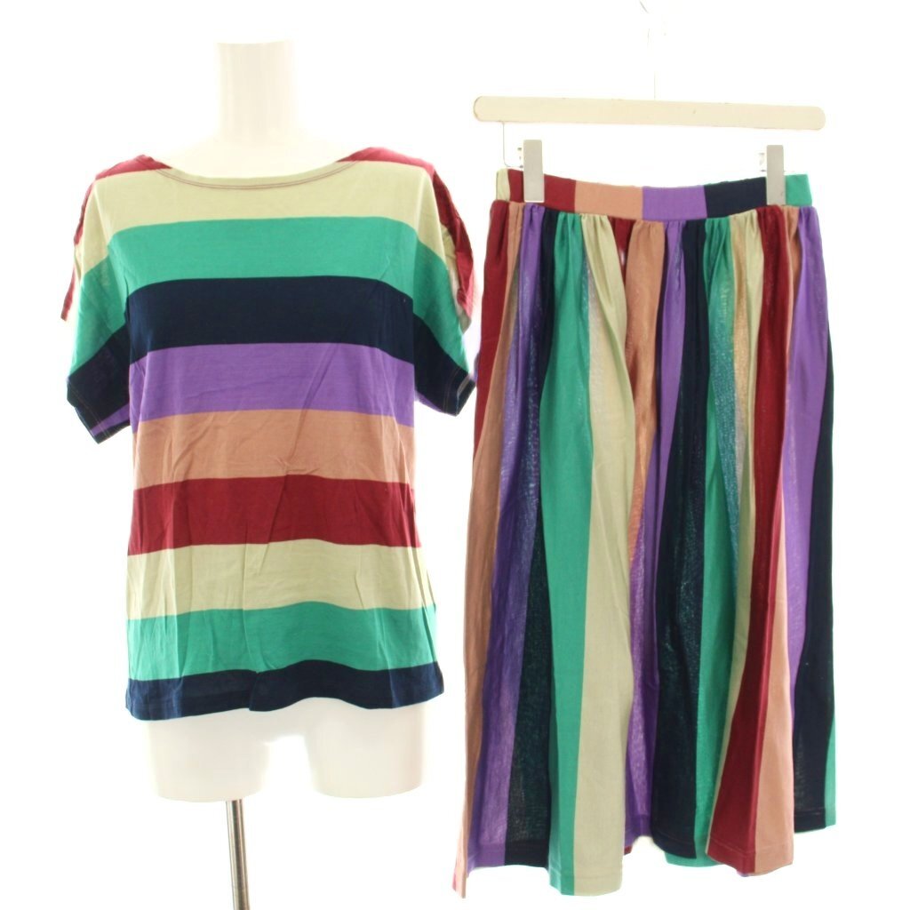ツモリチサト セットアップ 上下 マルチボーダーTシャツ カットソー フレアスカート ひざ丈 ストライプ 2 マルチカラー