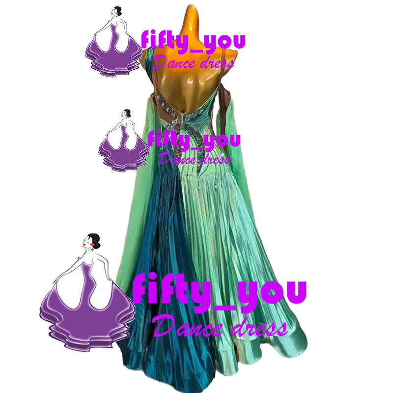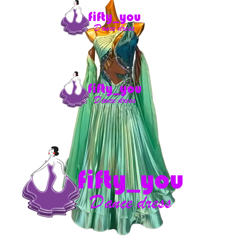 新品fifty_youレディース社交ダンスドレス  モダン競技会ドレス スタンダードドレス セミオーダー 光沢付きサテン生地 お洒落1着