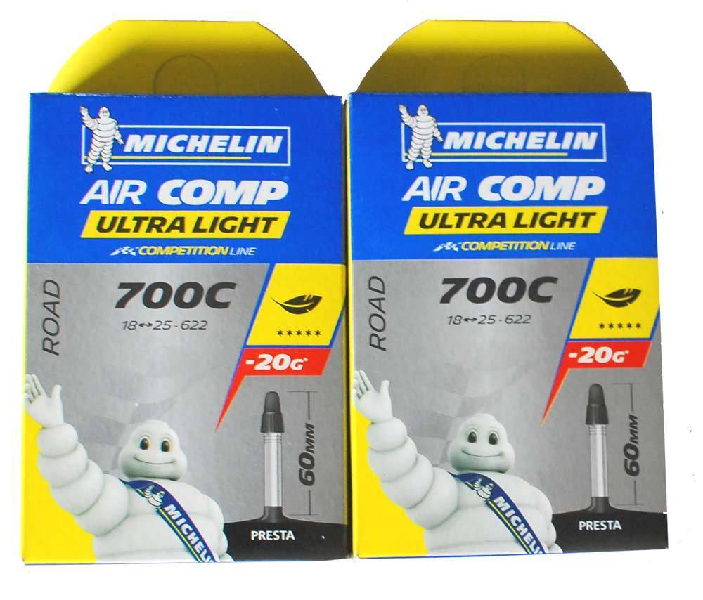 ミ■ミシュラン AirComp UL エアーコンプ ウルトラライト ブチル チューブ 60mm ロングバルブ 700C 18/25C |