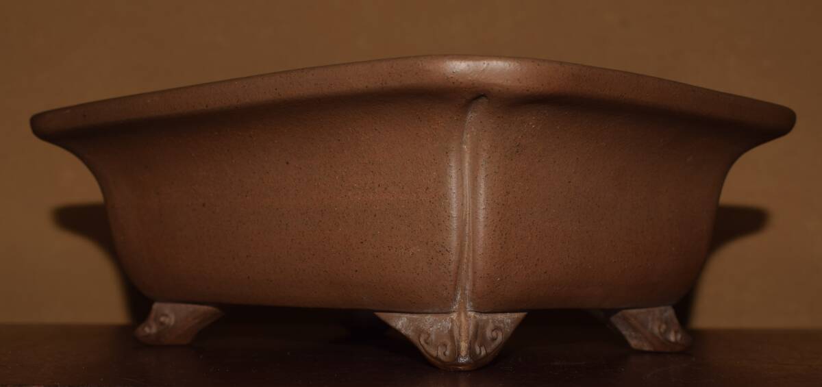 サイズ28,0x22,8x10,0cm 人気和鉢作家<中野行山・紫泥・大人気型、子淋防古型・時代乗り抜群・泥味抜群・中品サイズ>外縁隅入り雲脚長方鉢のご紹介です・・松柏、皐月に最適・・大人気型・・泥味抜群、丁寧な造り・人気型子淋防古型・・ 紫泥の泥味が良く、実用にも優れた素晴らしい逸品です・目立つ傷はありません。・・・ 大変古い物ですので縁・足等にホツ・スジ・カケ等がある場合がございます。 状態を良くご確認の上、ご入札宜しくお願い致します。。画像を良くご確認の上、御入札宜しくお願い致します。完品をお求めの方は入札をお控えお願い致します。*注意事項* オークション終了後48時間以内に必ずご連絡をお願いします。ご連絡がない時は、ご購入意思がないと判断し、落札者さま都合のキャンセルとさせて頂きます。再三のご連絡を差し上げても、ご連絡がない場合は、時点繰り上げとさせて頂きます。マイナス評価の多い方や新規の方を削除する場合がありますので、ご了承下さい。また、入札価格が低価格の場合は取消終了とさせて頂く場合がございますので、ご了承願います。古い物等ございますので小さな傷等は、見落とす場合がございますので、写真を良くご覧になり納得の上ご入札して下さい。また、完品をお求めの方は入札をお控えお願い致します。キズ・破損等のご連絡は商品到着5日以内にご連絡ください。それ以降は対応致しかねますので到着後、商品を必ずご確認ください。輸送中の事故(鉢が割れる、枝が折れる等)につきましては商品到着時に確認し取引ナビまたは、お電話にてご連絡下さい。 基本土日の発送は行っておりません。ご了承ください。