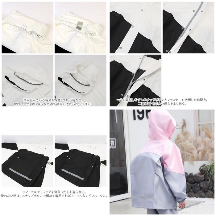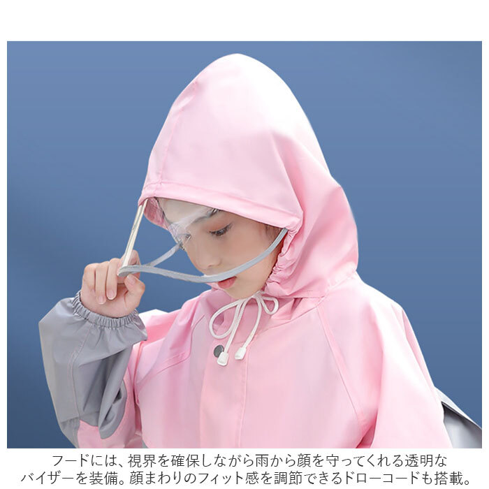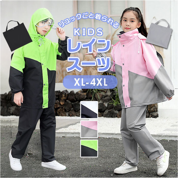商品説明 | ・・雨の日のお出かけや通学通園に便利なキッズ用レインスーツが発売。 ・スマートなバイカラー仕様のレインスーツ。シンプルなデザインで男女関係なく使用可能! ・ランドセルやリュックを背負ったまま着られる。使わない時は、スナップボタンで留めて着用すればノーマルなレインスーツに。 ・一人で着脱しやすいスナップボタンとファスナーを活用した前開き。二重構造で雨水の侵入をより防ぐ。 ・防水機能はもちろん、通気性もある素材を使用し、通学などで長時間歩いても蒸れにくく快適な着心地♪(※完全防水ではございません。強雨時など水分が浸入してくる場合もございます。) ・フードには、視界を確保しながら雨から顔を守ってくれる透明なバイザーを装備。顔まわりのフィット感を調節できるドローコードも搭載。 ・雨が止んでいる時や傘をさしている時など、使わないときはクルクル丸めて襟元に入れられる仕様に。 ・伸縮性がある袖口で風と雨をしっかりガード! ・夕暮れ時の下校や、雨の日など薄暗い時に周りへ視認性を高めてくれるリフレクターを背面に配置。 ・ボトムスのウエストはお腹が苦しくならないゴムタイプ。 ・専用の収納袋付き。コンパクトに折りたためるから携帯に便利。 |