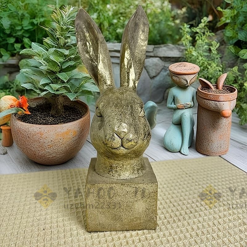 愛らしいウサギの頭のオブジェは、室内外を問わずおしゃれなインテリアとして大活躍します。上質なゴールドの仕上げが光り輝き、玄関やリビング、ダイニングに設置することで華やかな雰囲気を演出します。樹脂製のため、軽量で取り扱いやすく、ガーデニングや庭の装飾にもぴったりです。可愛らしいデザインは、訪れる人々を笑顔にし、コーディネートのアクセントとしても最適です。