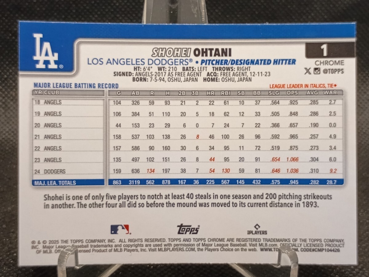 大谷翔平 ジオメトリックリフラクター 【2025 TOPPS CHROME BASEBALL #1 SHOHEI OHTANI GEOMETRIC REFRACTOR】ロサンゼルス・ドジャース