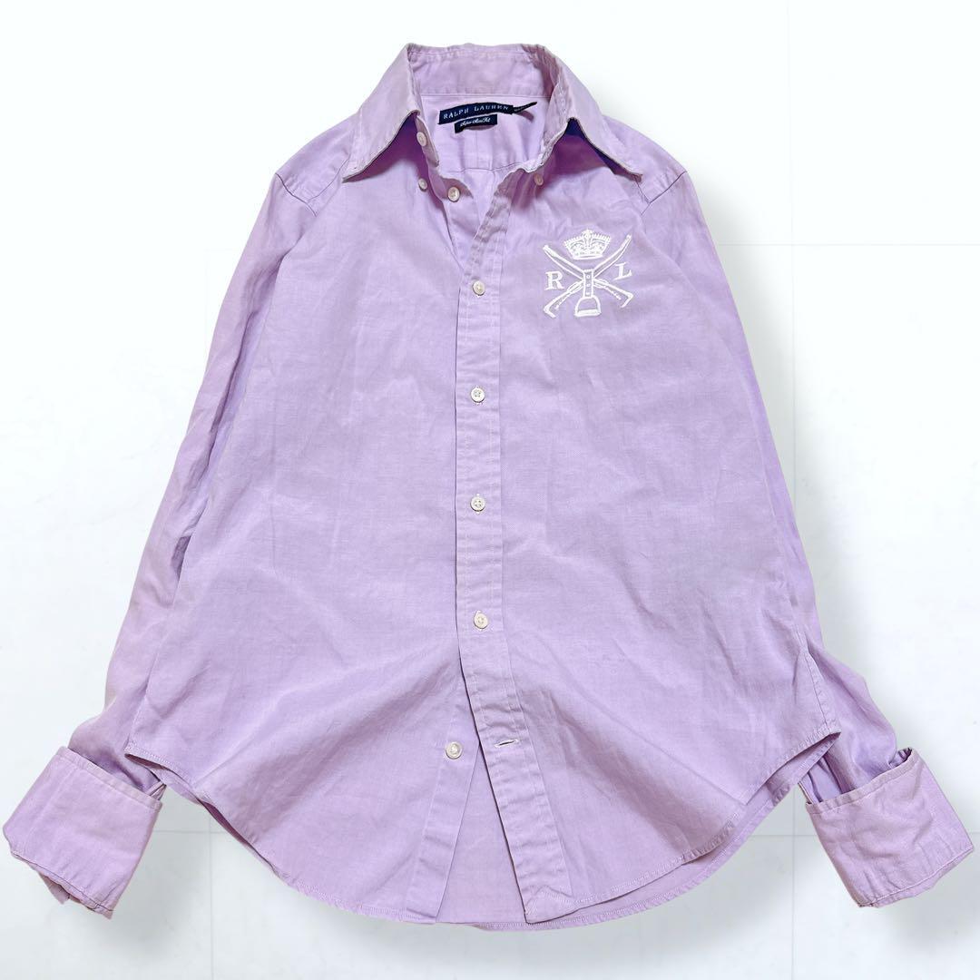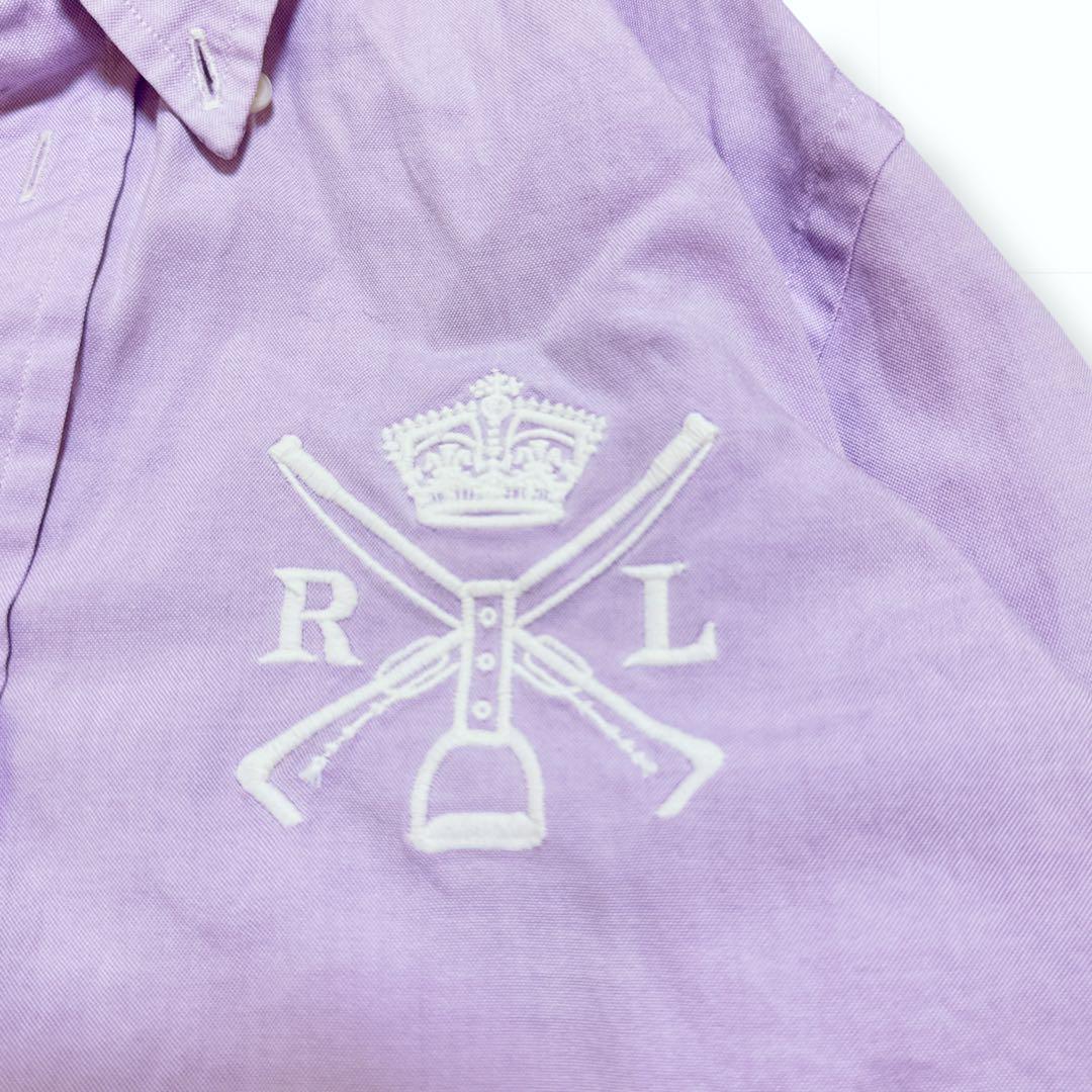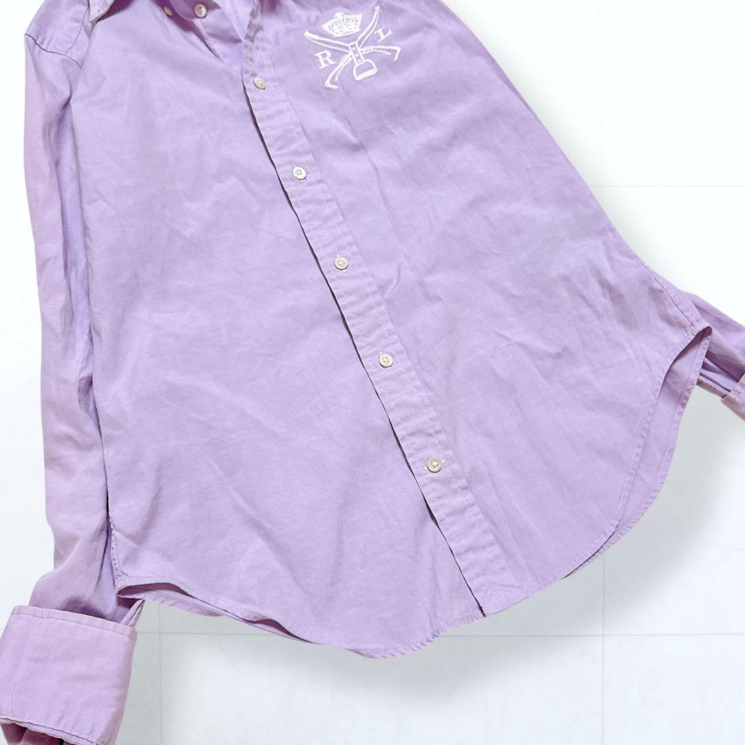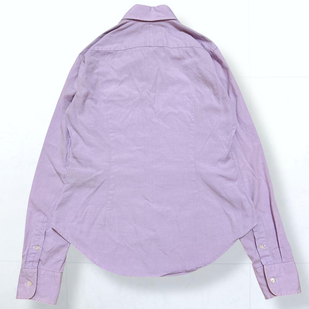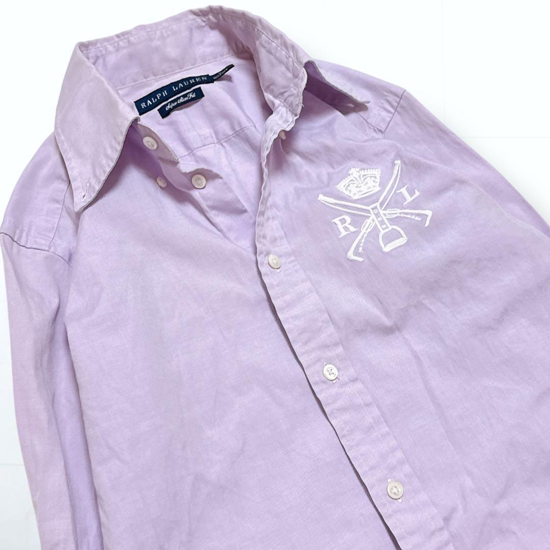 エンブレム刺繍 ボタンダウン 長袖 コットン シャツ ラベンダー Super Slim Fit