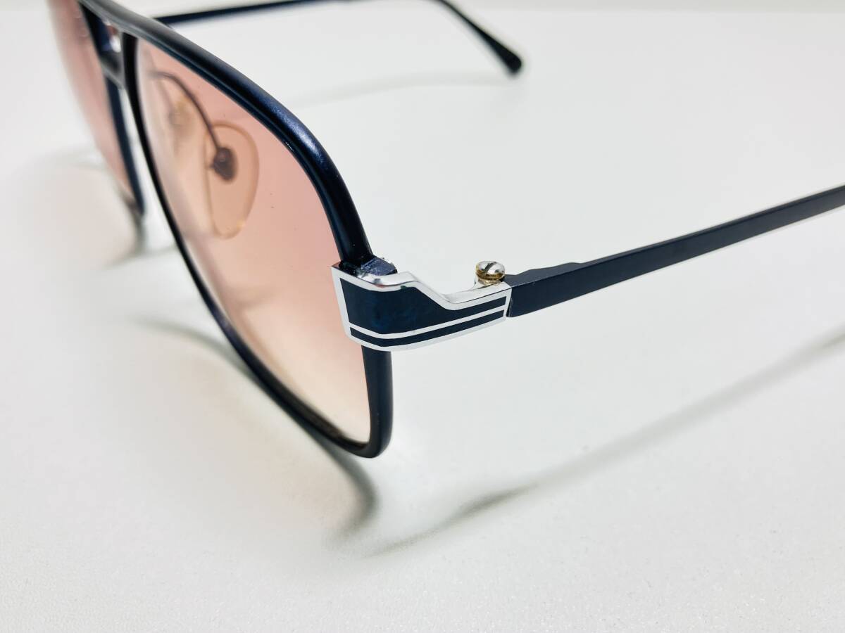 フレームやレンズは経年の若干小傷などがあります レンズは視野には影響ない程度です 度は入っておりません 歪み調整済み 各ネジ部分調整済み 鼻パッド清掃済み 除菌清掃済み カラー ネイビー系 サイズ約 58口20 テンプル側全長約 140mm フロント幅約 145mm レンズ縦幅約 48mm | |||