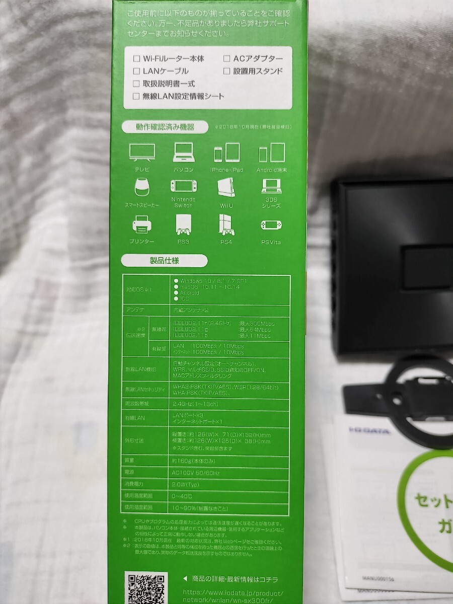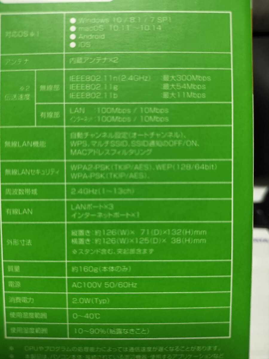 Wi-Fi(無線LAN)規格:IEEE 802.11n対応 IEEE 802.11g対応 IEEE 802.11b対応