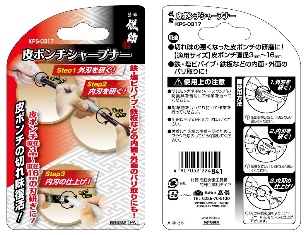 【新着商品】儀助 高儀(Takagi) 皮ポンチシャープナー KPS-0317