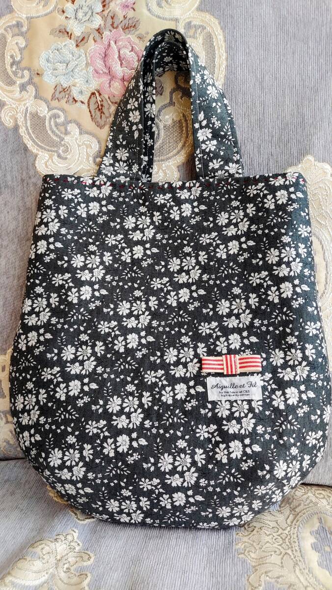 リバティ カペルのニット生地を使いまして、トートバッグを作りました。