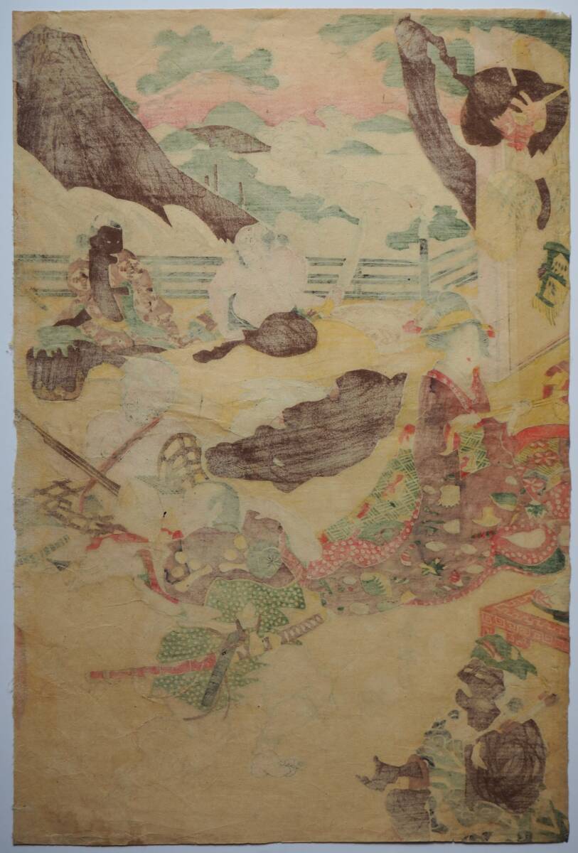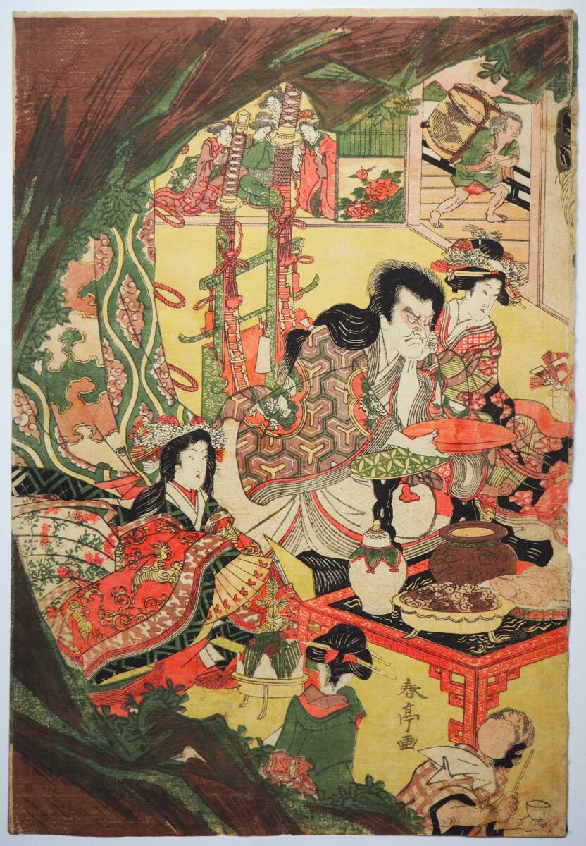 【真作】浮世絵版画 勝川春亭「源頼光山入之図三枚続」1818頃 酒呑童子 源頼光 武者絵 Ukiyoe Katsukawa SHUNTEI Japanese woodblock print