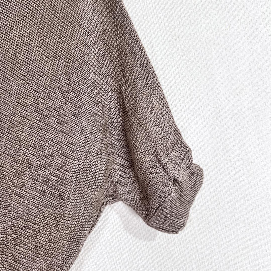 女性用のベージュ系の五分袖サマーニット セーターです。