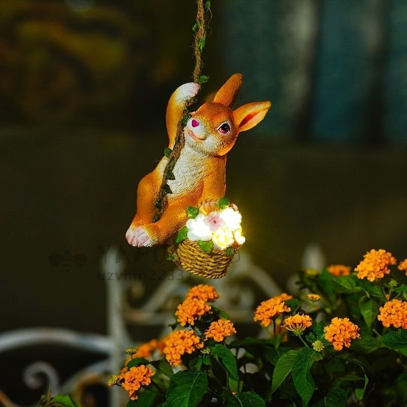 可愛いウサギの吊り下げソーラーライトオブジェです。柔らかい樹脂製で作られたこのウサギは、室内外問わず様々な場所にぴったりの装飾アイテムです。癒しの雰囲気を演出し、玄関やリビング、ダイニング、オフィスなどで可愛らしいアクセントになります。