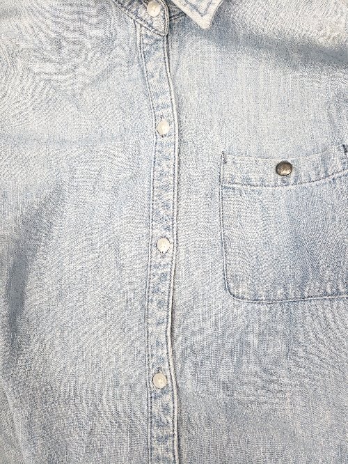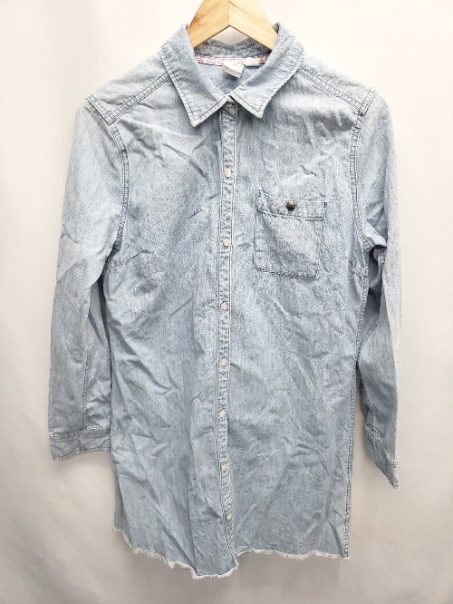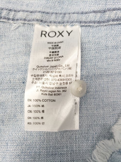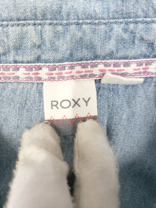 ◇ ◎ Θ Roxy ロキシー ロング丈 デニム調 長袖 シャツ サイズL サックスブルー レディース E