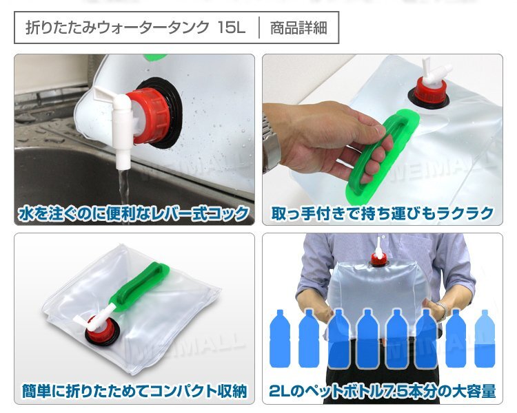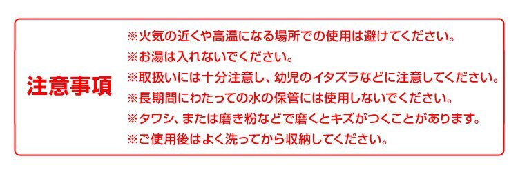 | スポーツやレジャー、災害時にも大活躍の折りたたみ式ウォータータンク! 水を注ぐのに便利なレバー式コック。 取っ手付きなので持ち運びもラクラク♪ 簡単に折りたためてコンパクト収納。 荷物の邪魔にならないので気軽に持ち運びできます。 キャンプやバーベキューなどのアウトドア・レジャーシーンで大活躍! テントなどの”おもり”として使用も可能です! ■商品コード:HGB01150 ■商品仕様 内容:ウォータータンク15L×1個 サイズ:(約)27cm×25cm×22cm サイズ(収納時):(約)25cm×27cm×4cm 容量:15L 素材:PVC 本体重量:(約)260g ■注意事項 ・本品は水専用のタンクとなります。ガソリン・石油・アルコール等は入れないで下さい。 ・火気の近くや高温になる場所での使用は避けて下さい。 ・飲料用ではないので飲料水は入れないで下さい。 ・お湯は入れないで下さい。 ・長期間にわたっての保管には使用しないで下さい。 ・たわし又は磨き粉で磨くとキズがつくことがあります。 ・ご使用後はよく洗ってから収納して下さい。 ・商品は、モニターによって色合いが異なって見える場合があります。 ・仕様・デザインは改良のため予告なく変更することがあります。 ■保障期間 7日間 ※商品到着後7日以内の初期不良・破損のみご対応させていただきます。 【新品未使用品です】 |